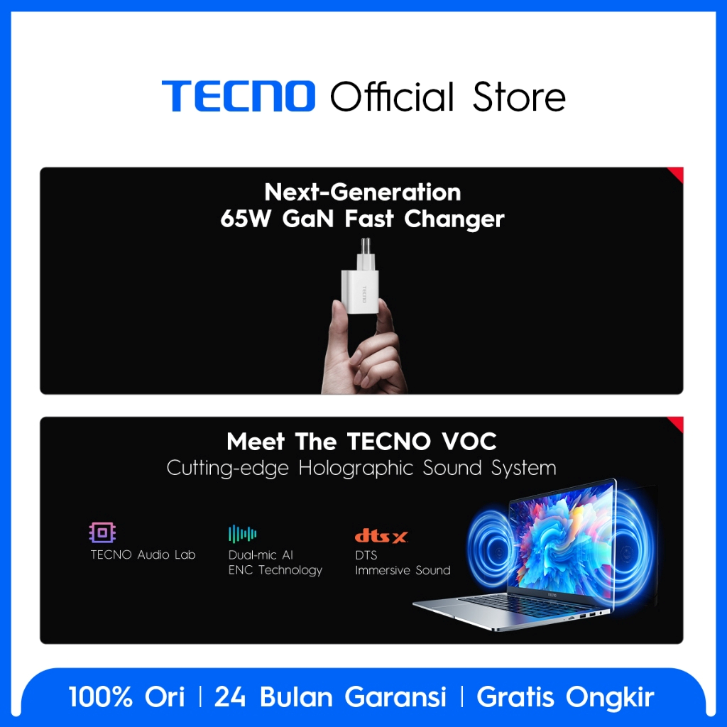 TECNO MEGABOOK T1 R5 - 16GB+512GB, AMD Ryzen 5-7430U, 100%SRGB Display, 75Wh Battery, 65W Type-C GaN PD Fast Charge , DT