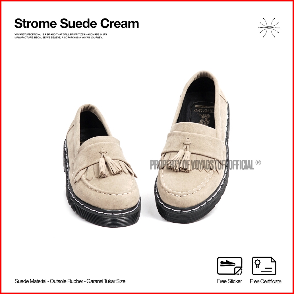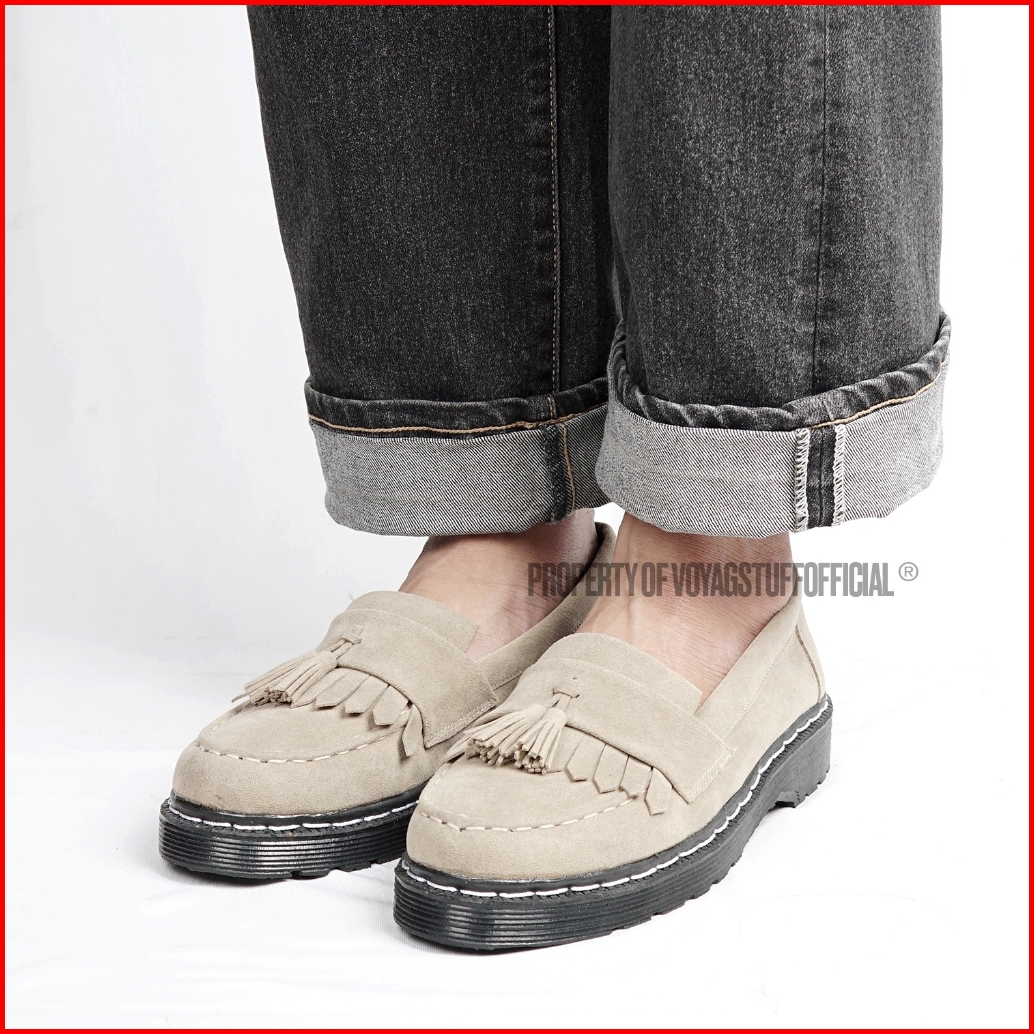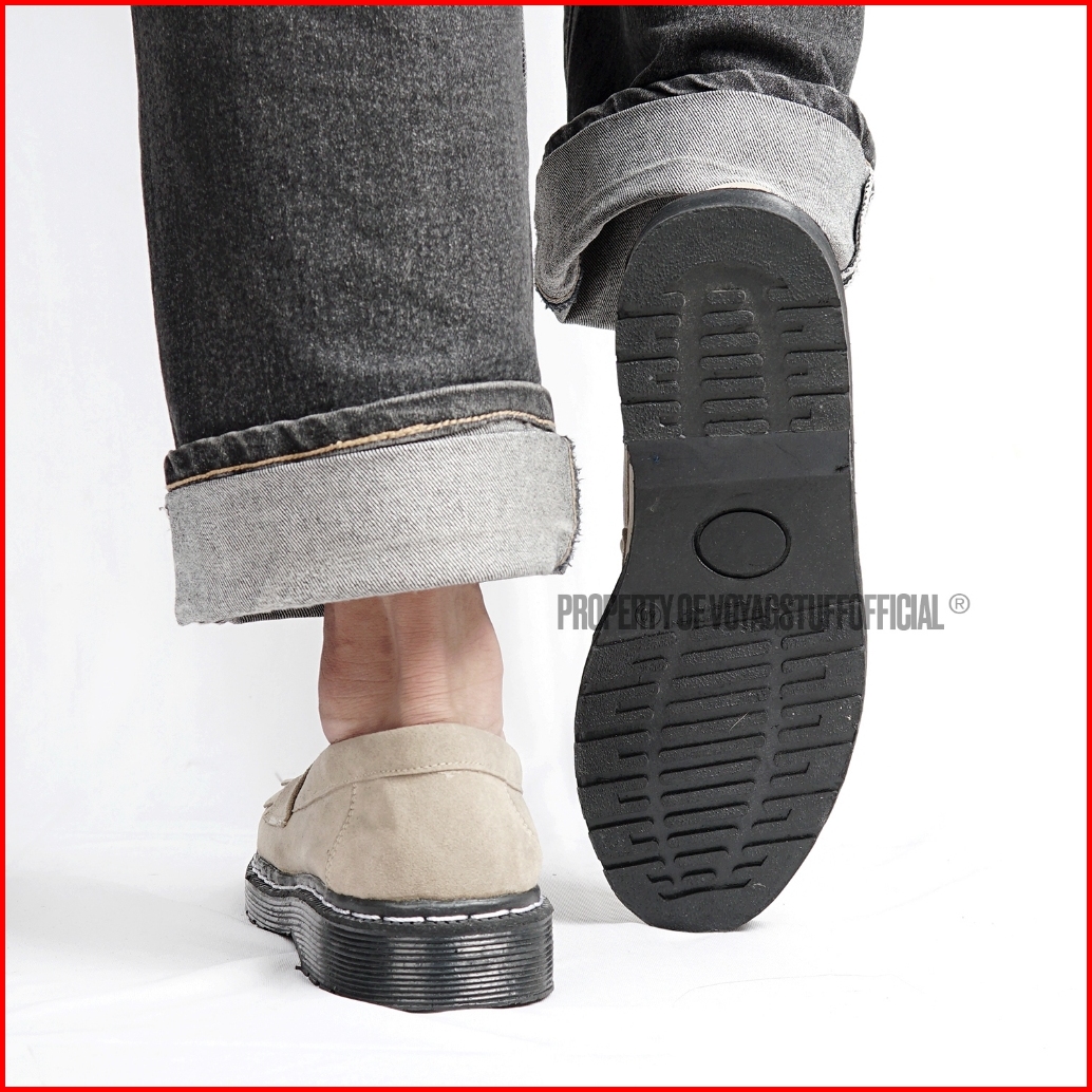 Voyagstuffofficial - Strome Sepatu Penny Loafers Suede Krem Pria