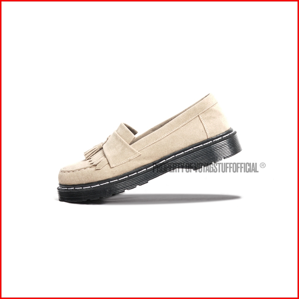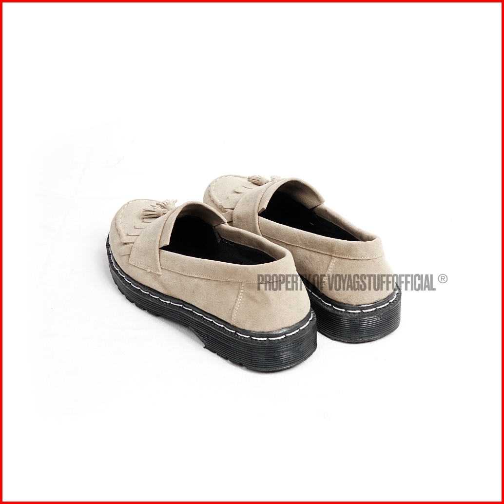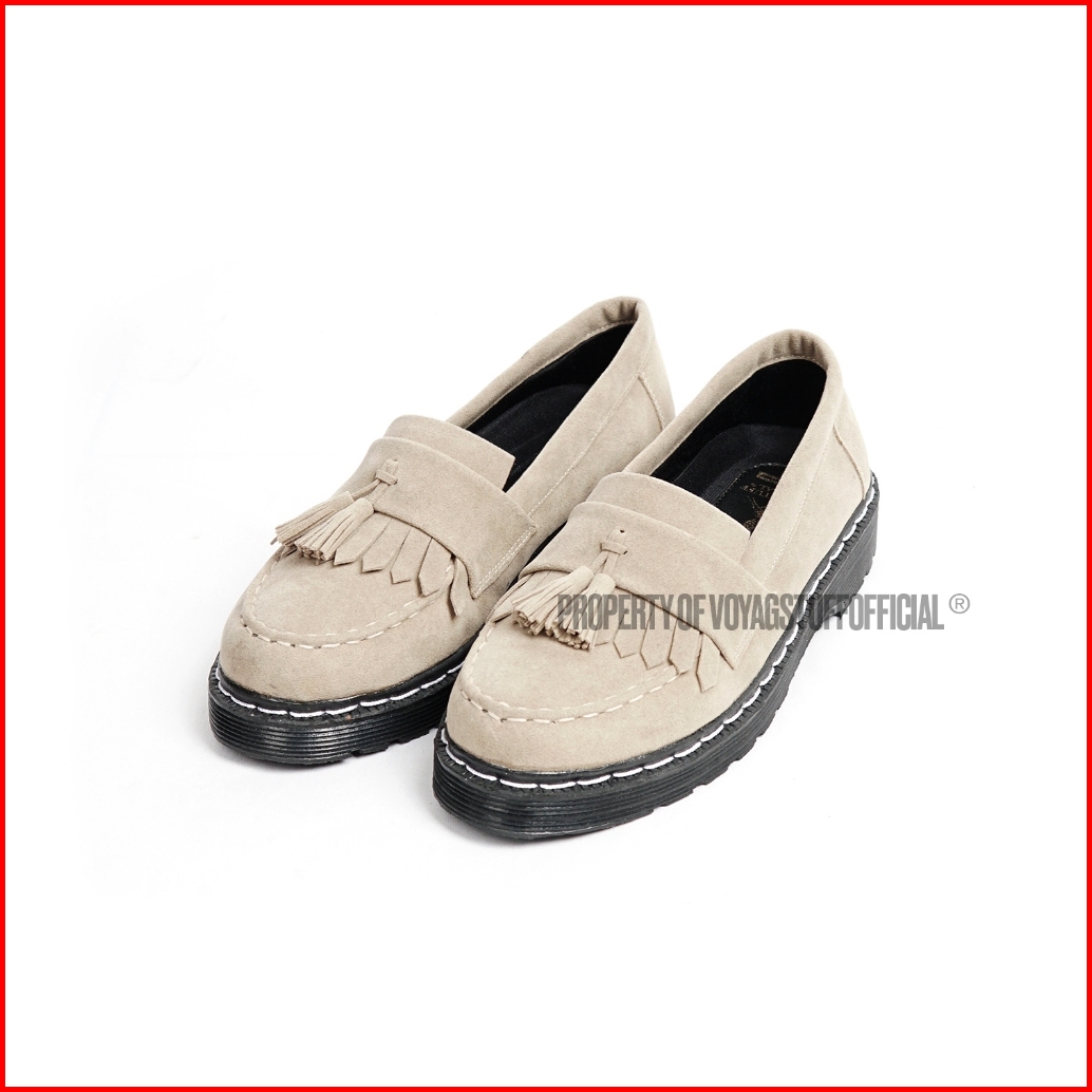 Voyagstuffofficial - Strome Sepatu Penny Loafers Suede Krem Pria