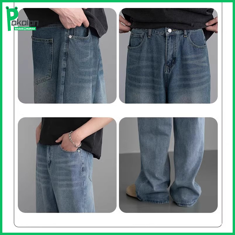 Jeans biru retro Celana Unisex Celana jeans pria celana panjang pria baggy jeans pria jeans kulot celana korean style pr
