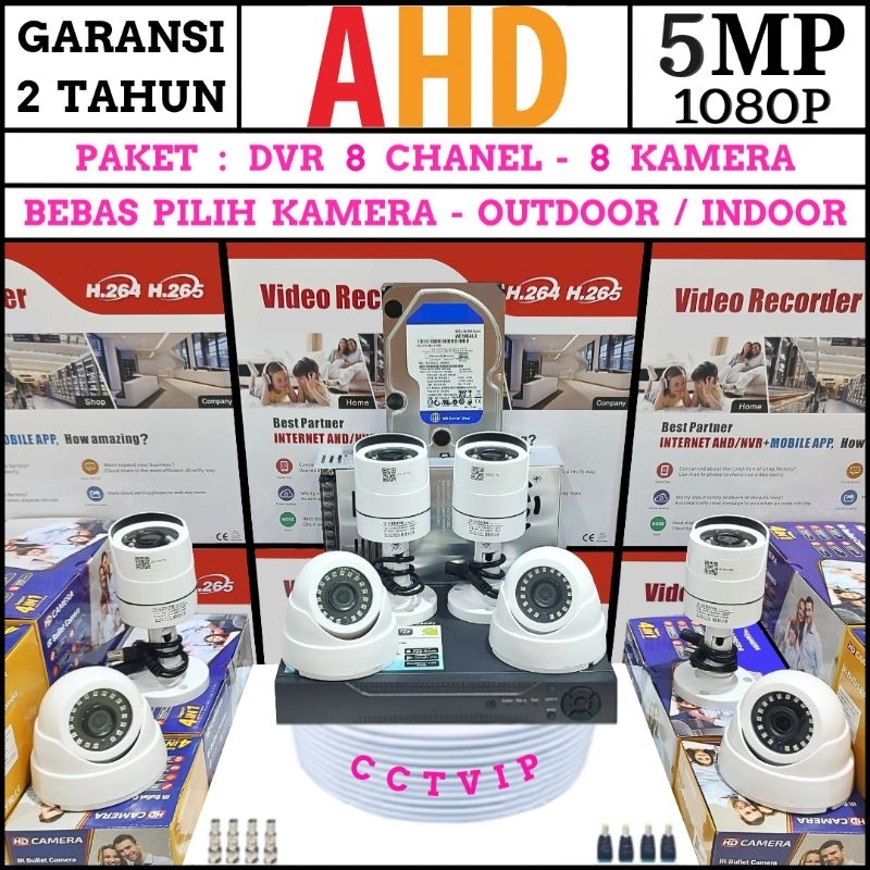 Gratis Ongkir - Paket Komplit Cctv 8 Kamera 5mp Full Ahd 1080p