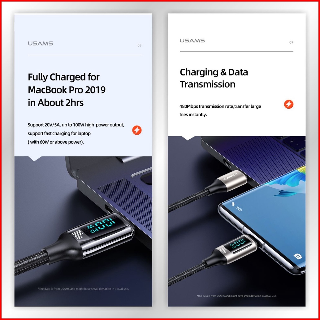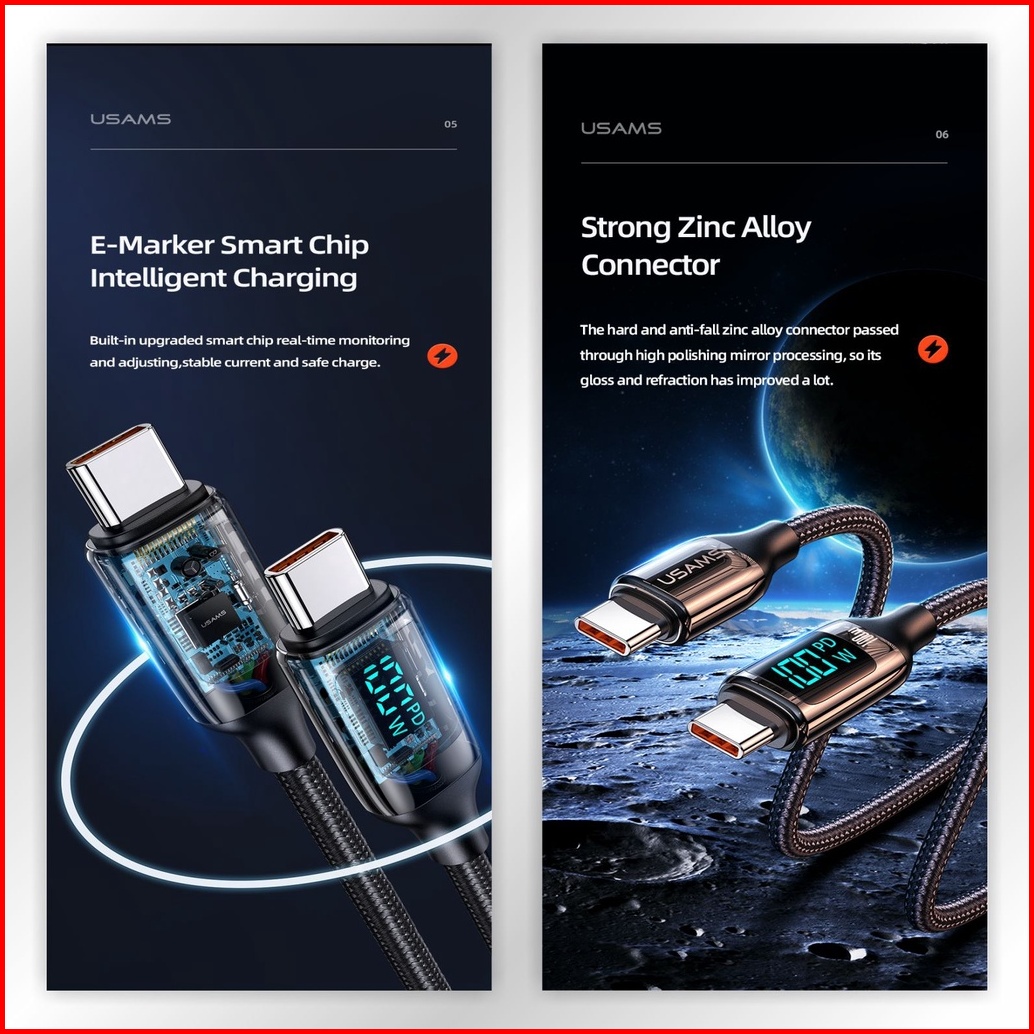 Usams U78 Kabel Data Fast Charging Type C To Type C Digital Display 100w
