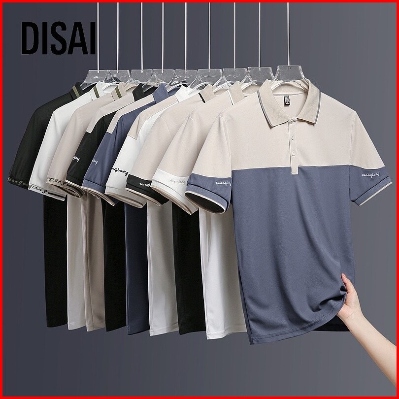 Disai - Kaos Polo Shirt Pria Kaos Polos Kerah Pria Lengan Pendek Penyambungan Dan Kontras Formal Casual Polo