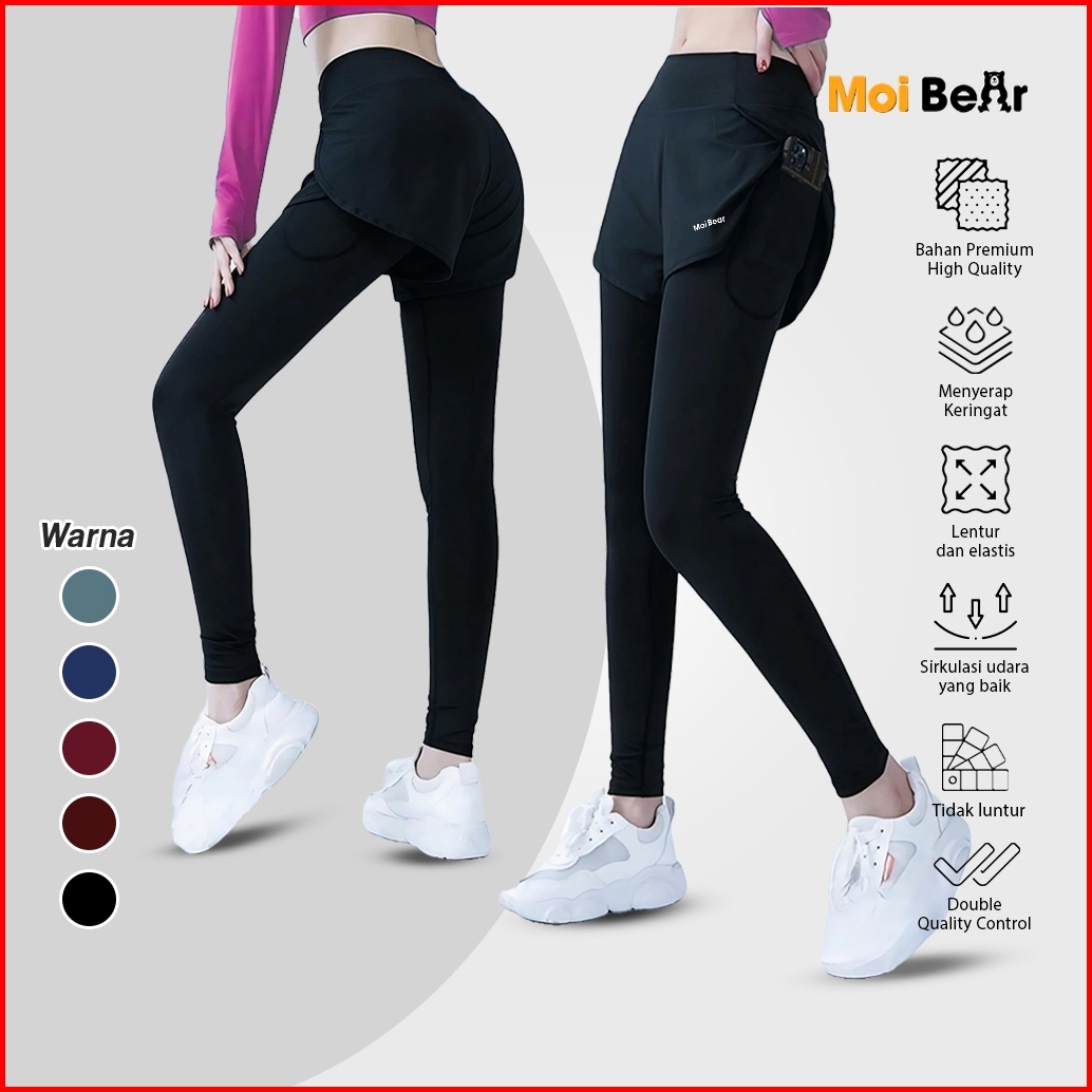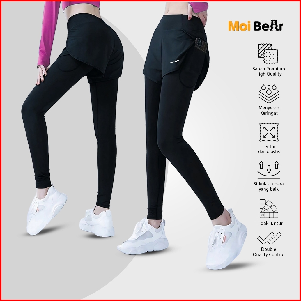 Moi Celana Legging Running Pendek 2in1 Pria Wanita Legging Hotpants Panjang Olahraga Running Lari Fitnes Senam Zumba Bad