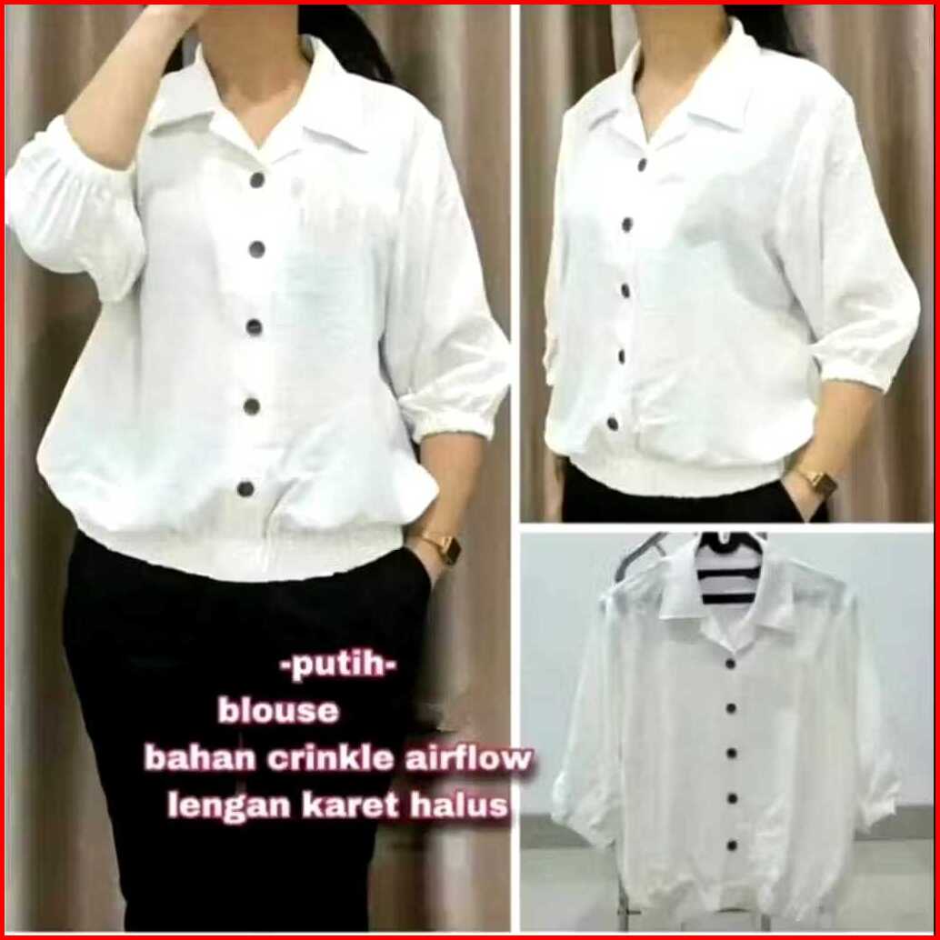 Pakaian Kemeja Wanita Pinggang Karet Atasan Atasan Kemeja Kemeja Atasan Wanita Crinkle Atasan Putih