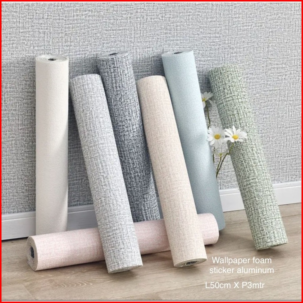Wallpaper Linen Roll 3d Sederhana Warna Wallpaper Dinding Sticker Dinding 50cm 300cm