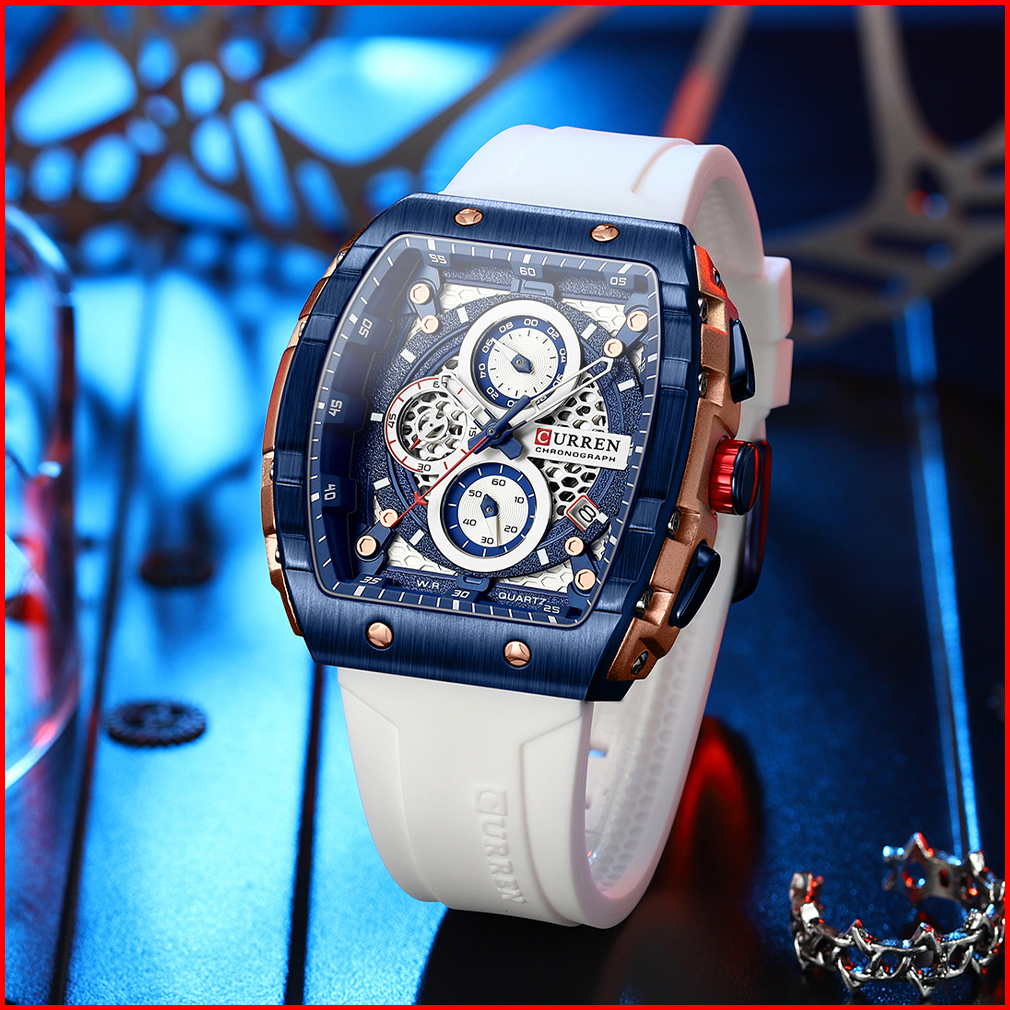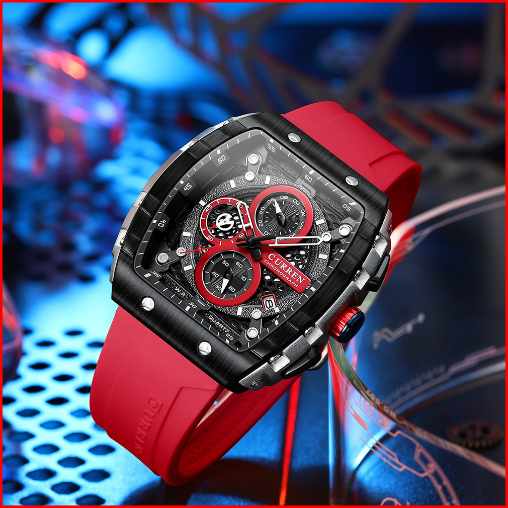Curren Jam Tangan Pria Merek Teratas Mewah Kuarsa Persegi Tahan Air Luminous Chronograph Jam Tangan Cowok Jam Tanggal