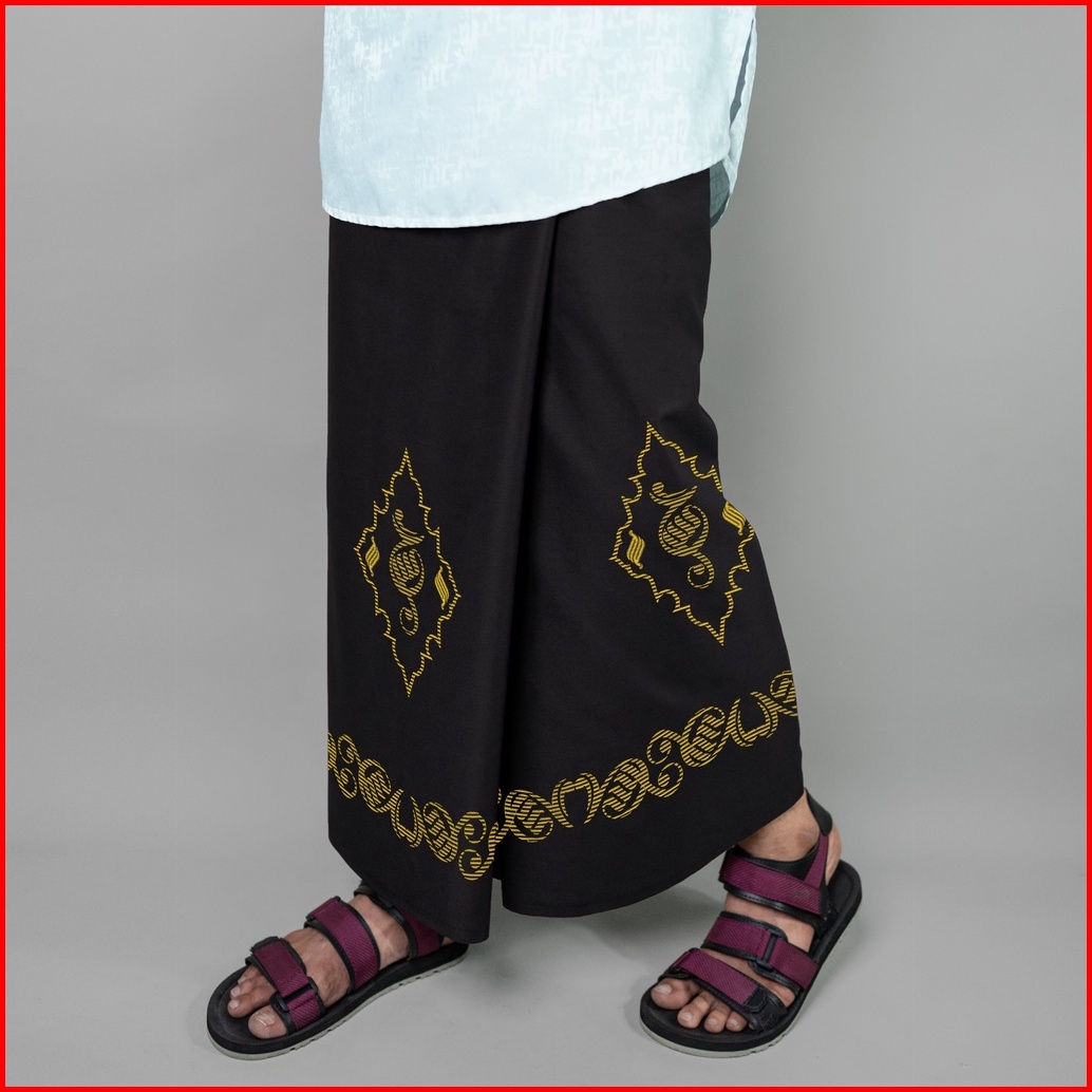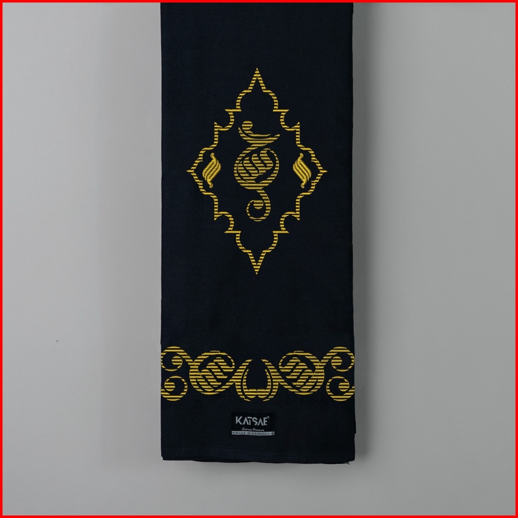 Katsae - Sarung Bordir Motif Kaligrafi Hasan Bordir Timbul Sarung Pria Dewasa Warna Hitam Sarung Sholat 100 Bordir