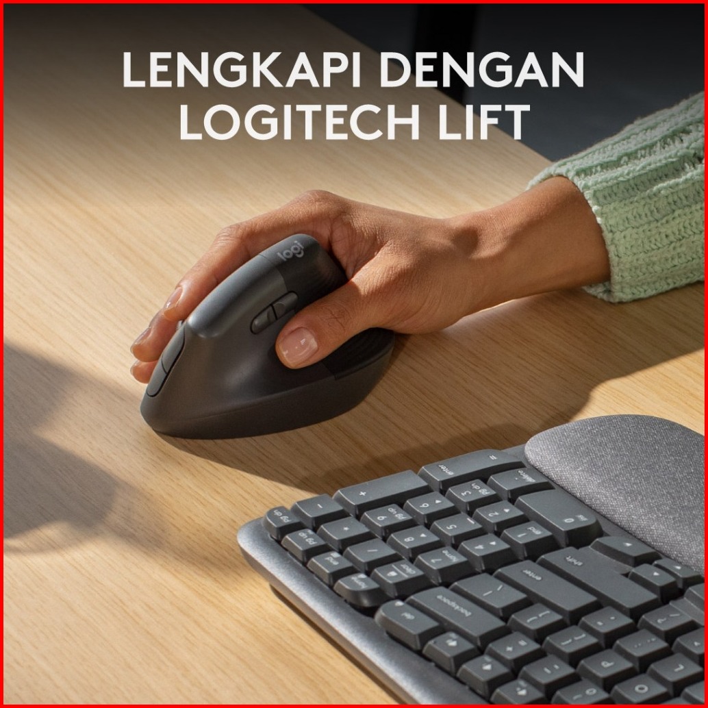 Logitech Wave Keys Keyboard Ergonomis Wireless Bluetooth Dan Multi-os Windows Mac Dilengkapi Dengan Cushioned Palm Rest