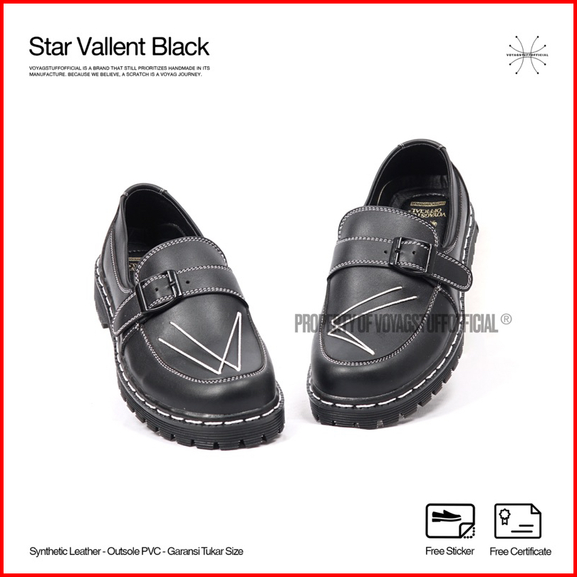 Voyagstuffofficial - Sepatu Penny Loafers Star Vallent Kulit Pria Black