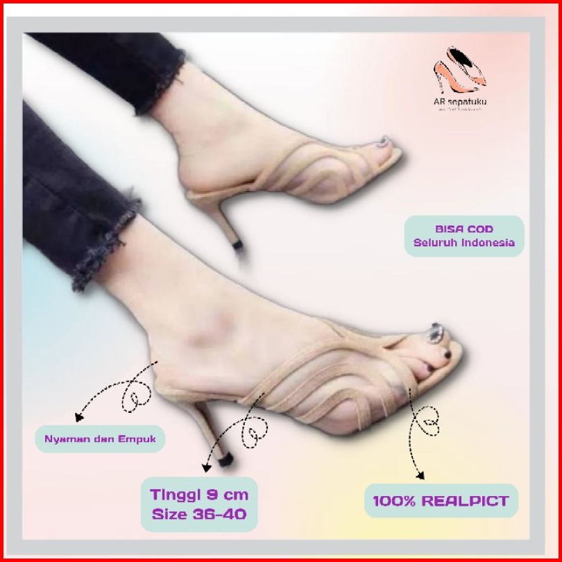 Ar High Heels 9cm Sandal Pesta Hils Furing Ukuran 36 40 H 01