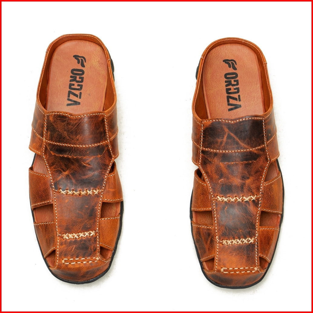 Sandal Slop Pria Bustong Casual Kulit Asli Handmade Sepatu Sandal Bt506