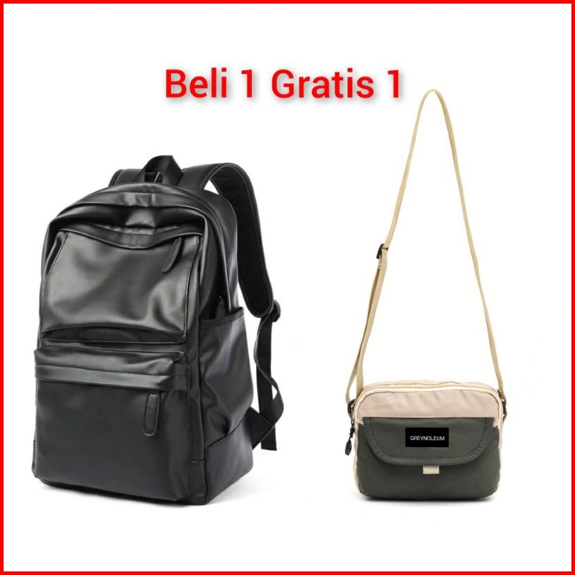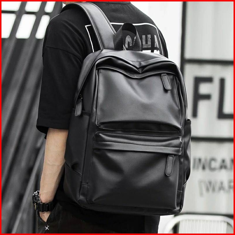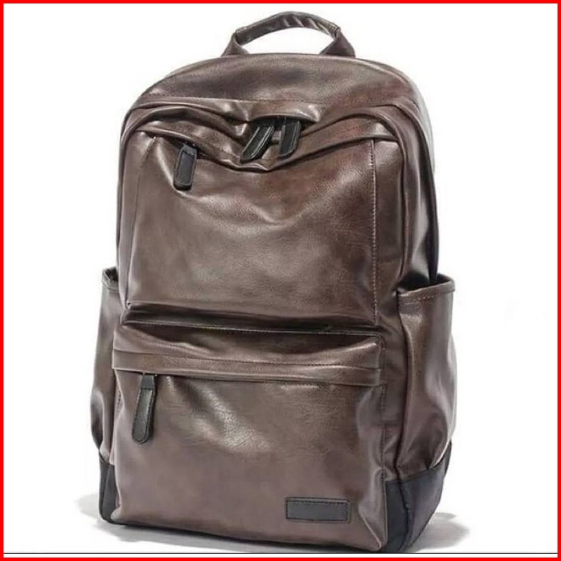 Tas Ransel Kulit Anti Air Waterproof Backpack Laptop 15 Inch Tas Sekolah Kuliah Kerja Pria Wanita Tas Laptop Kulit Pu Ke