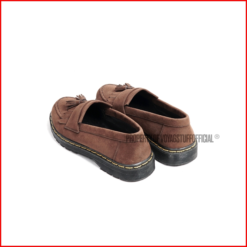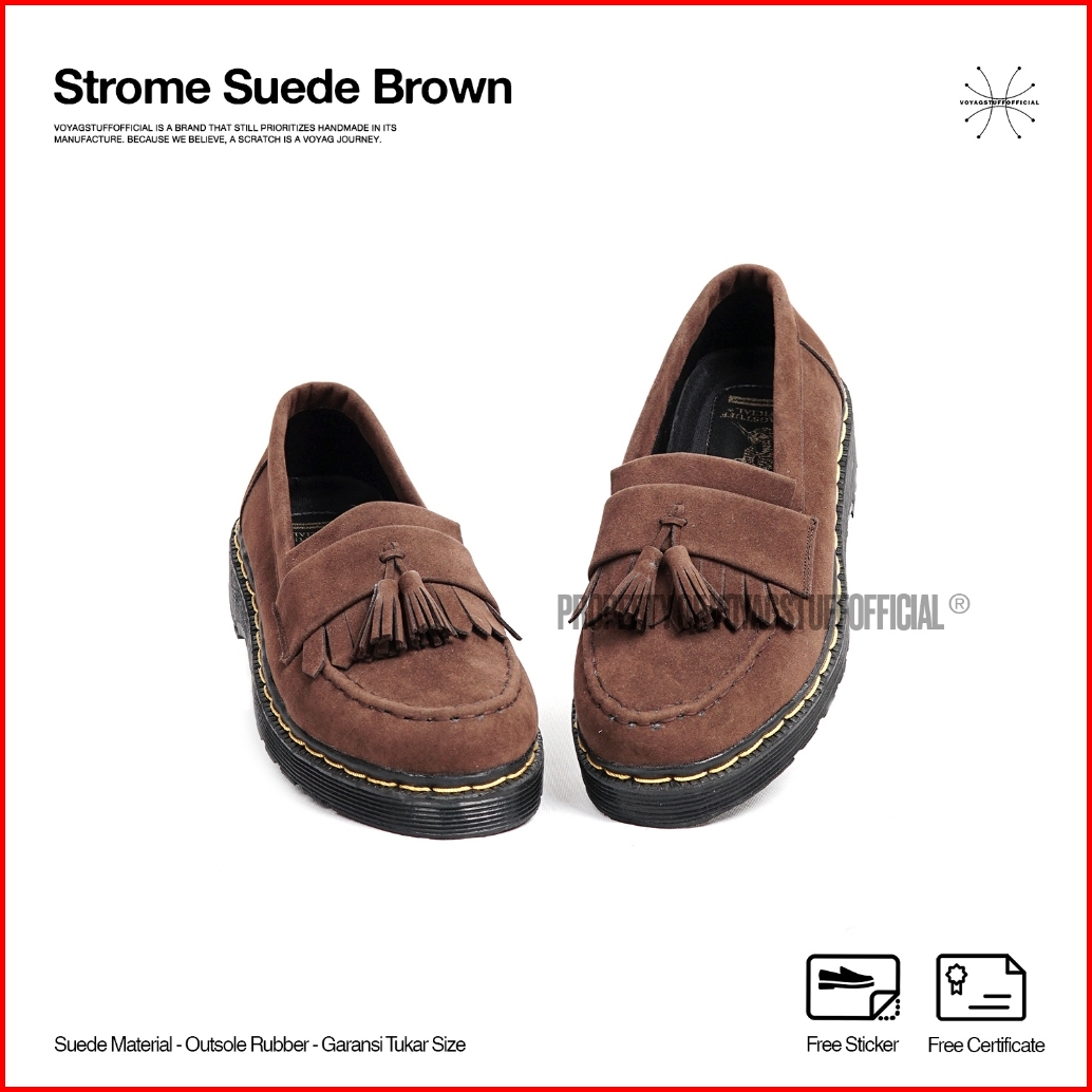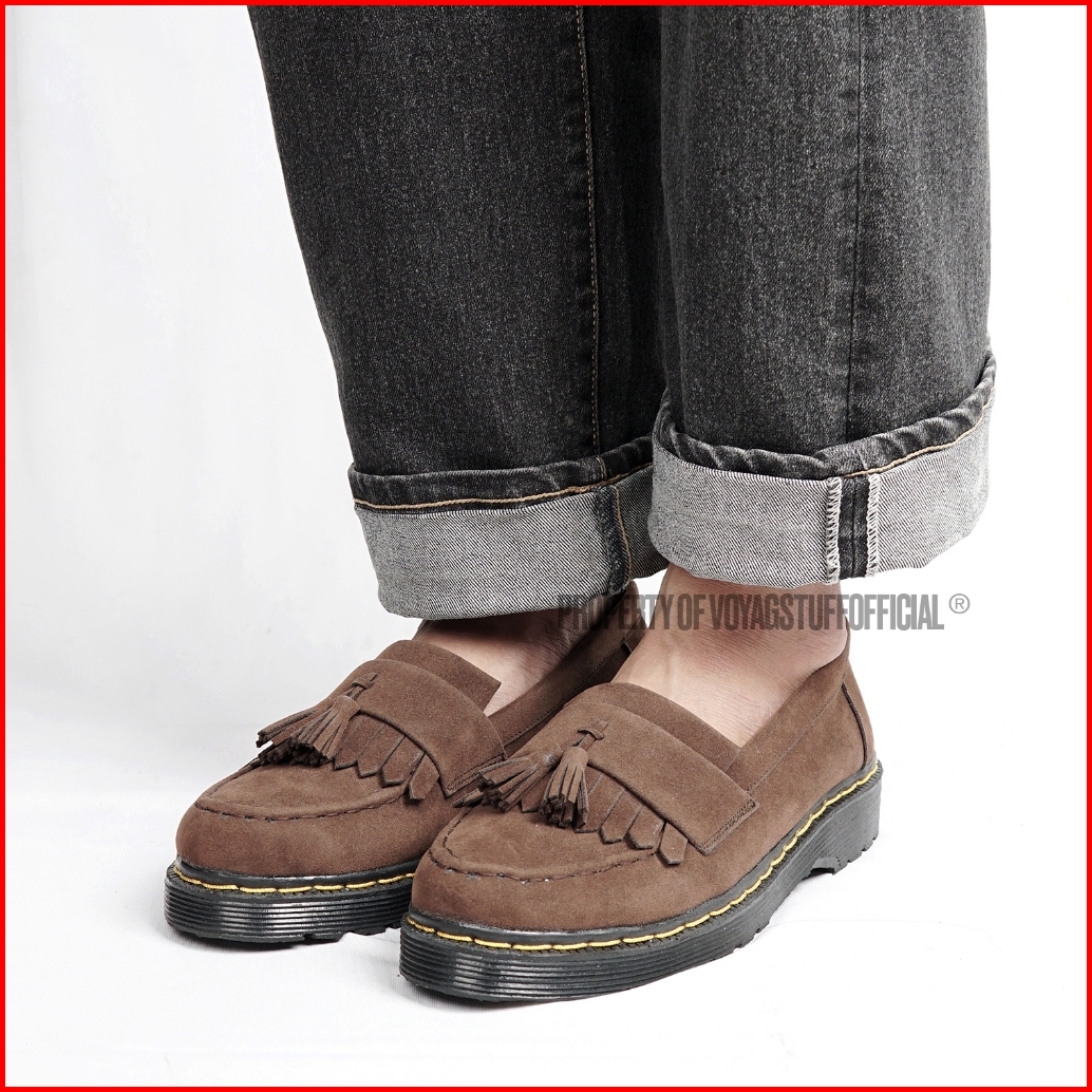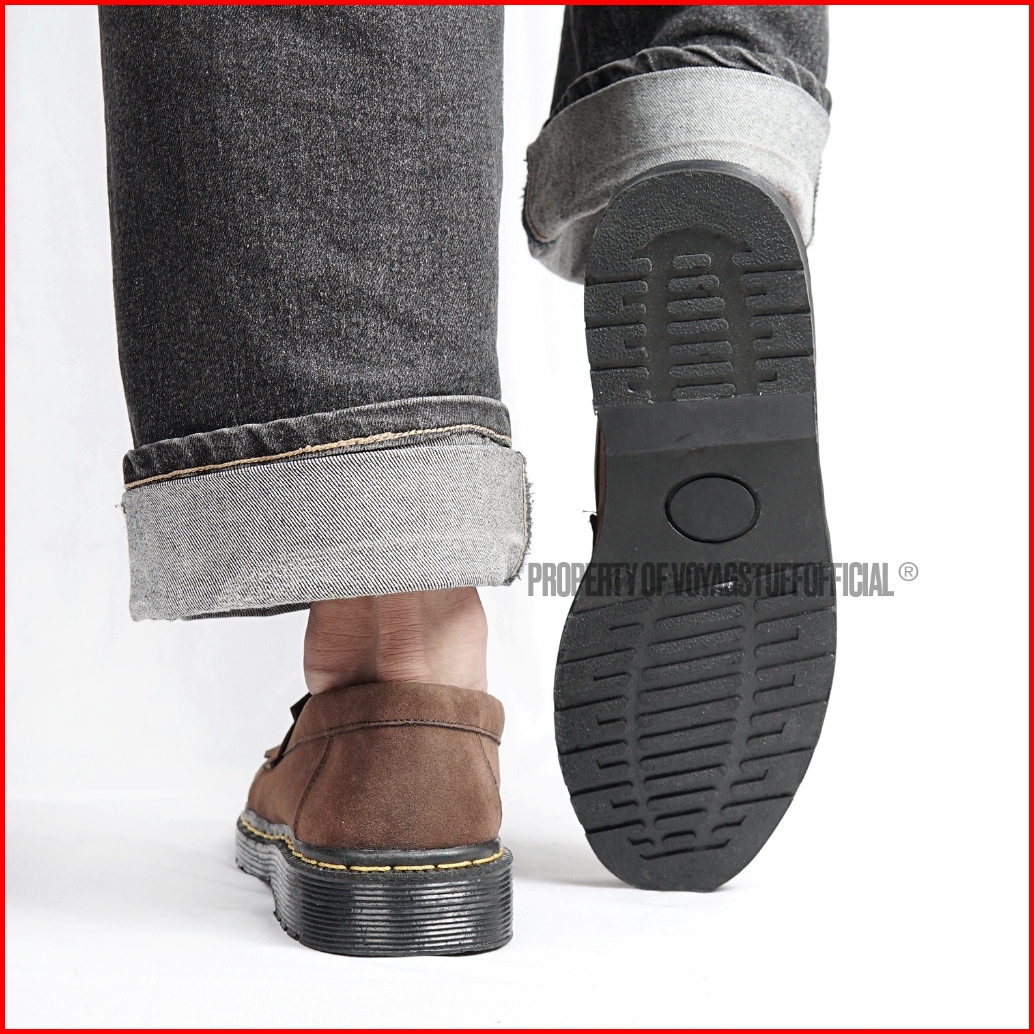 Voyagstuffofficial - Strome Sepatu Penny Loafers Pria Suede Brown