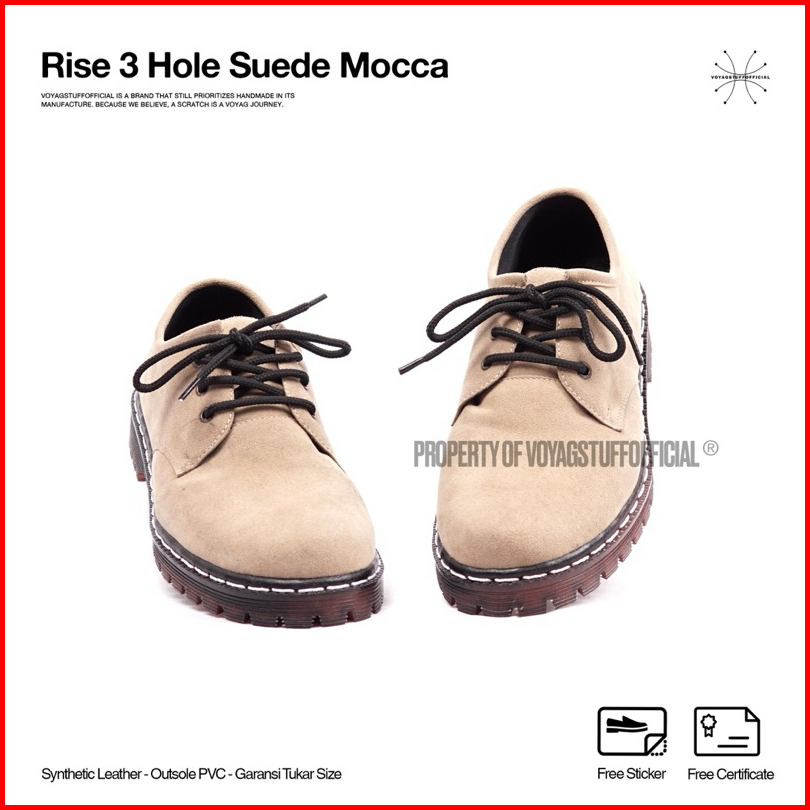 Voyagstuffofficial - Rise Sepatu Formal 3hole Boots Suede Cream Pria