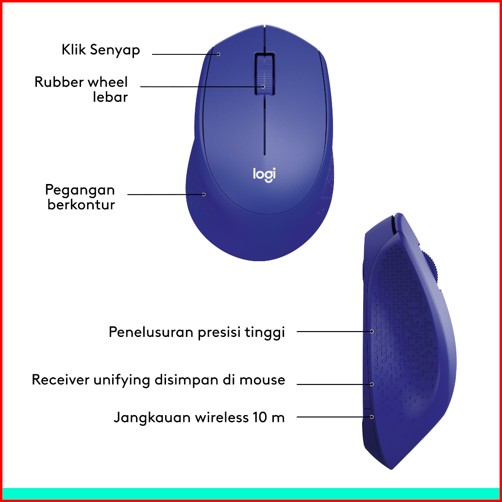 Logitech M331 Mouse Wireless Silent Click - Blue