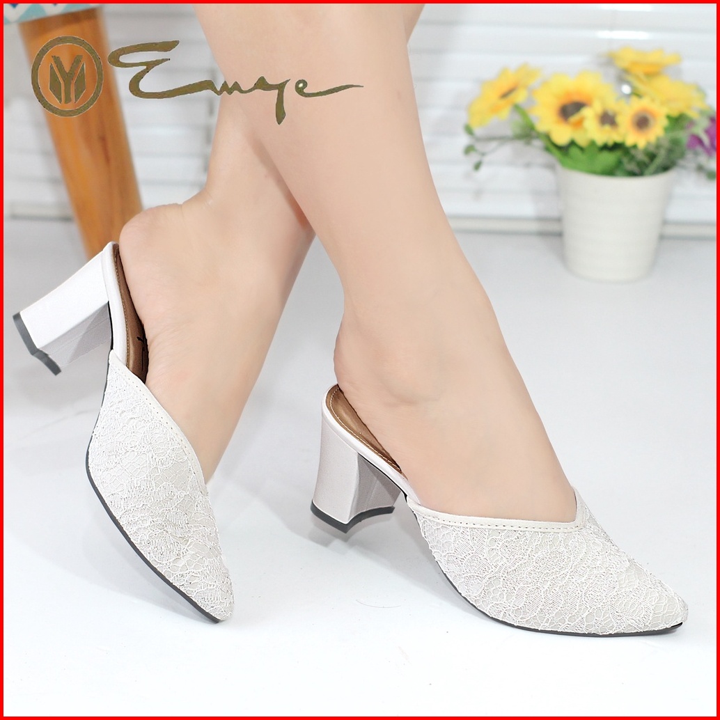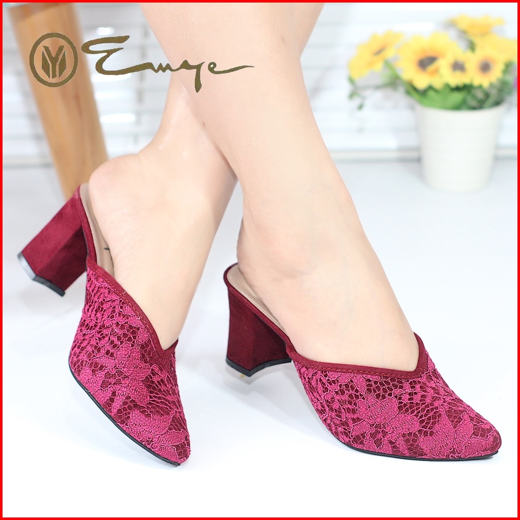 Emye - Sepatu Heels Brokat Pesta Wanita Glitter 7cm Brukat Pengantin Kondangan Wisuda Seserahan