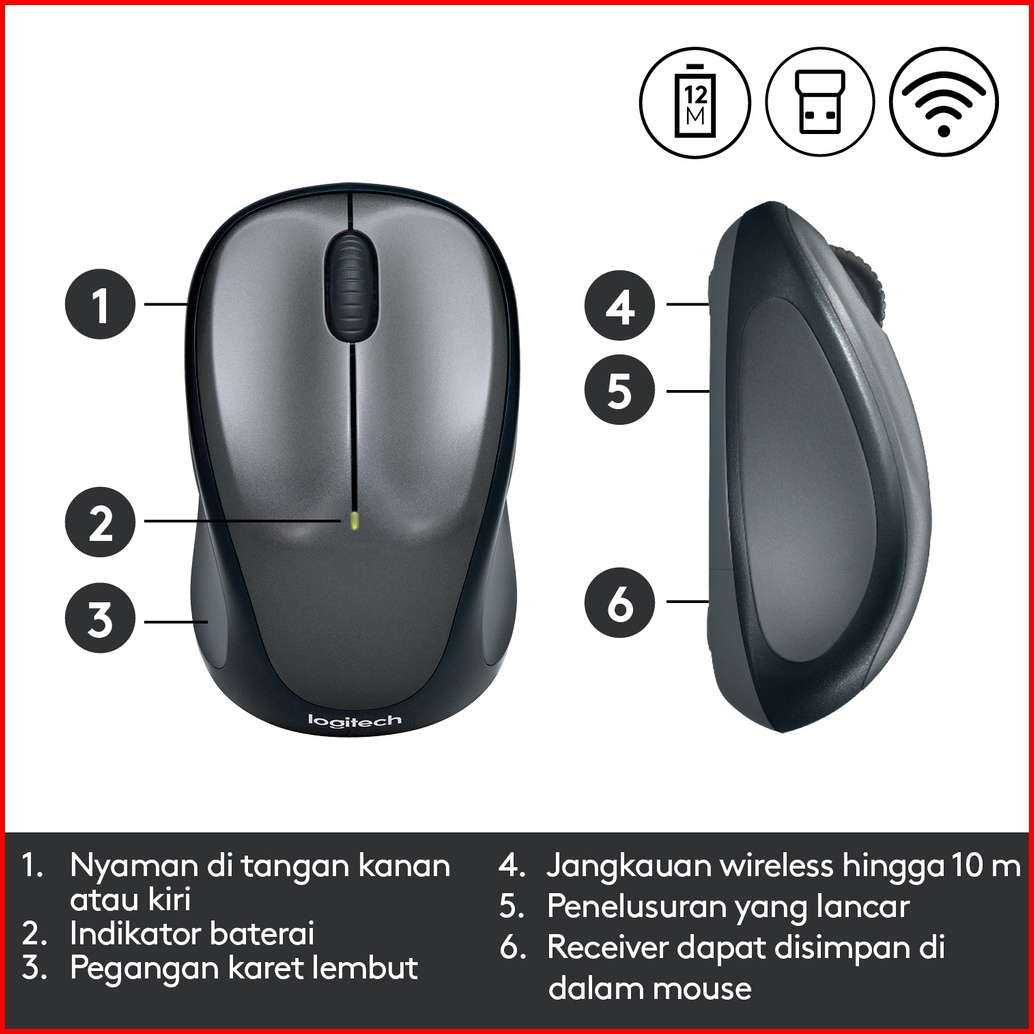 Logitech M235 Mouse Wireless Grip Karet Nyaman - Colt