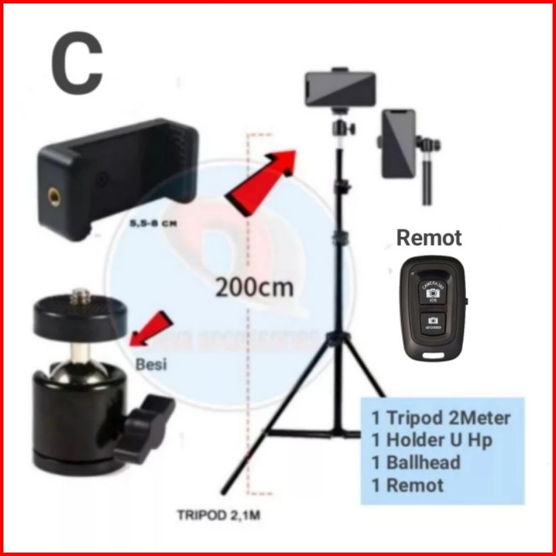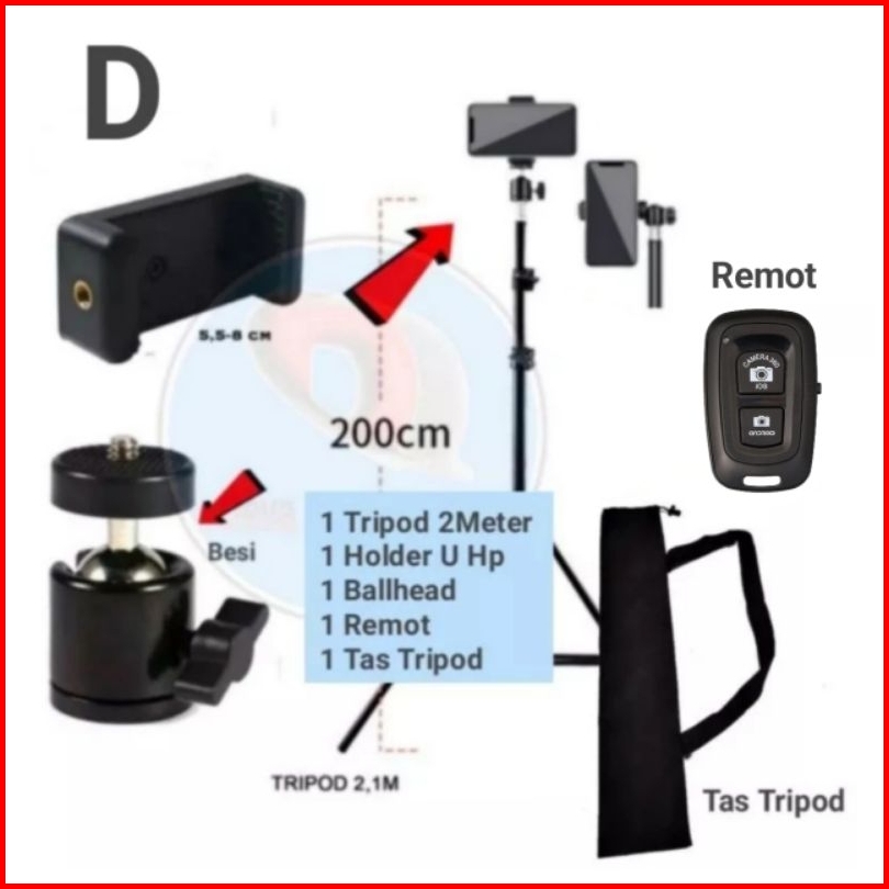 Tripod 2 Meter Tripod Hp Camera Holder U Hp Ballhead Besi