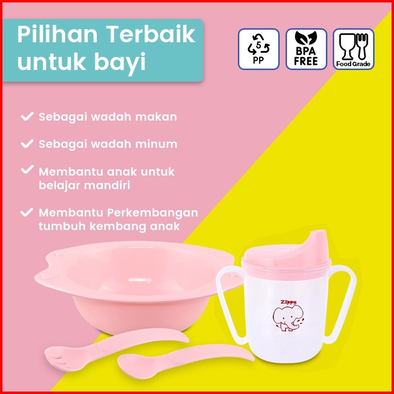 Agizippy Feeding Set Alat Makan Bayi 5 Pcs Bahan Polypropylene Meal Set Tempat Makan Bayi Bpa Free Zip-fs003