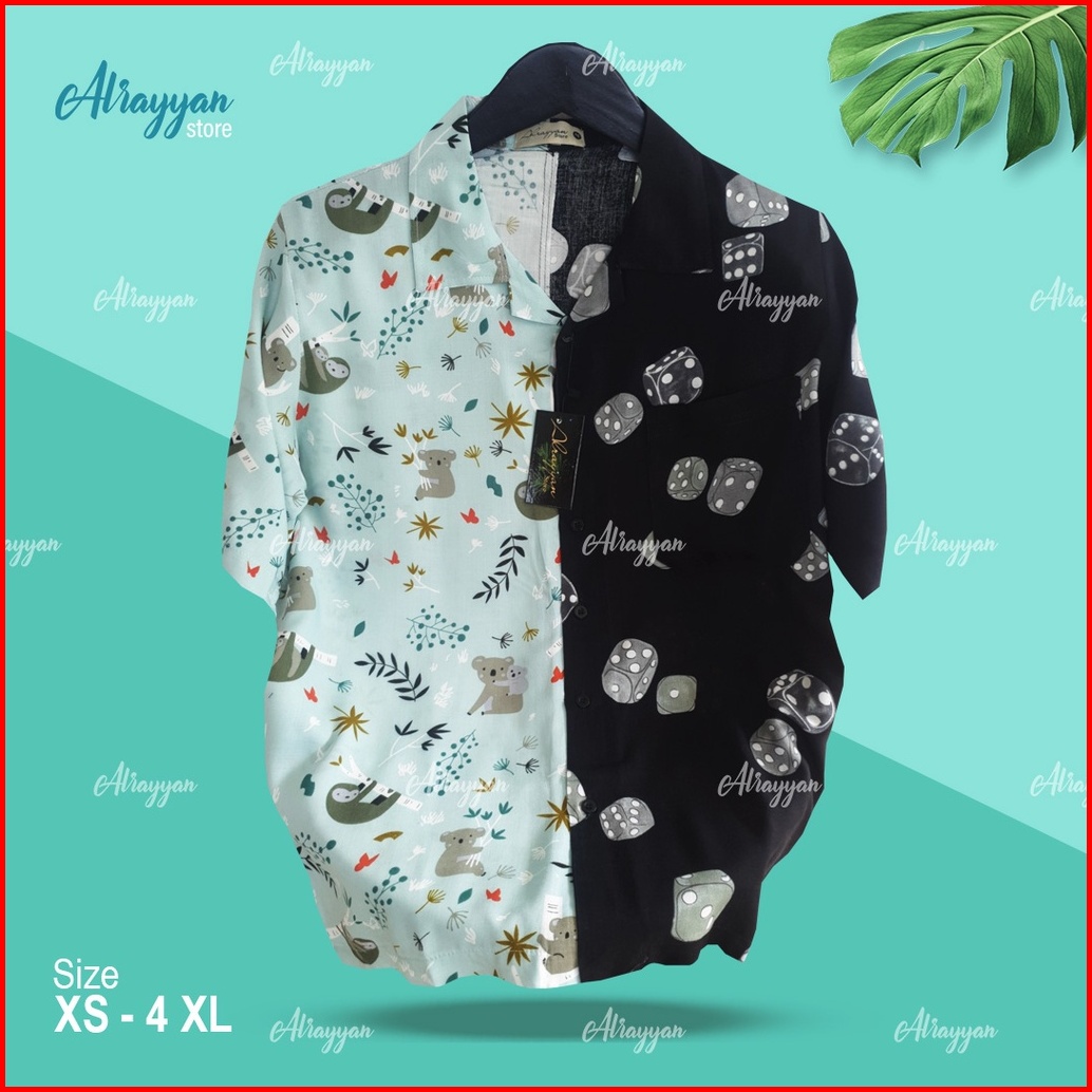 Alrayyan Store - Kemeja Daily Pantai Full Print Lengan Pendek Dice Two Tone Pria Wanita Kemeja Hawalili Motif Kombinasi