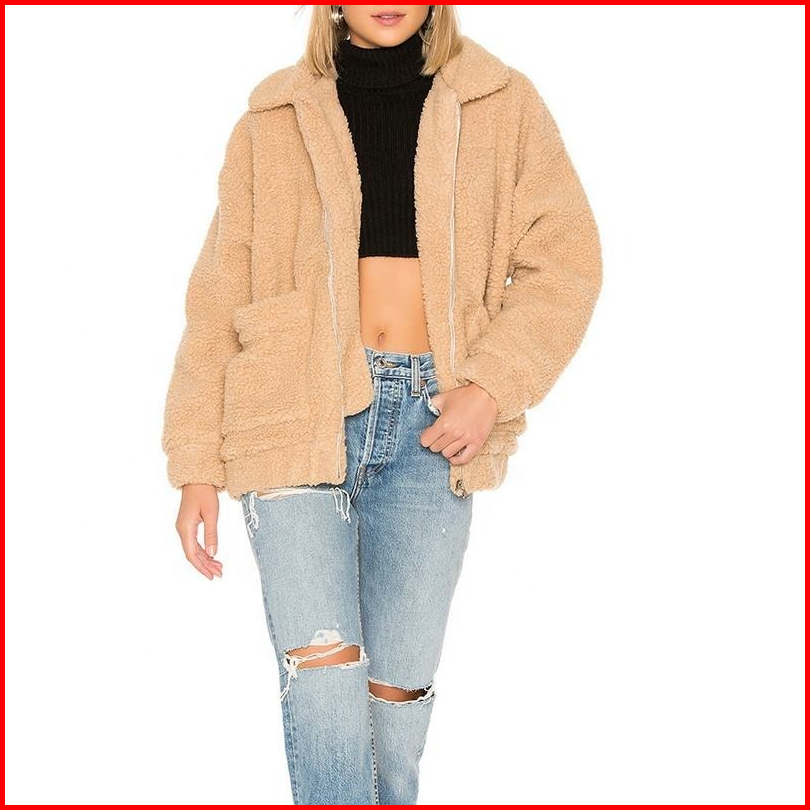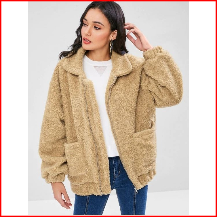 Ready Sweater Jaket Bulu Wanita Jaket Sherpa Saku Bahan Bulu Domba Import Tebal