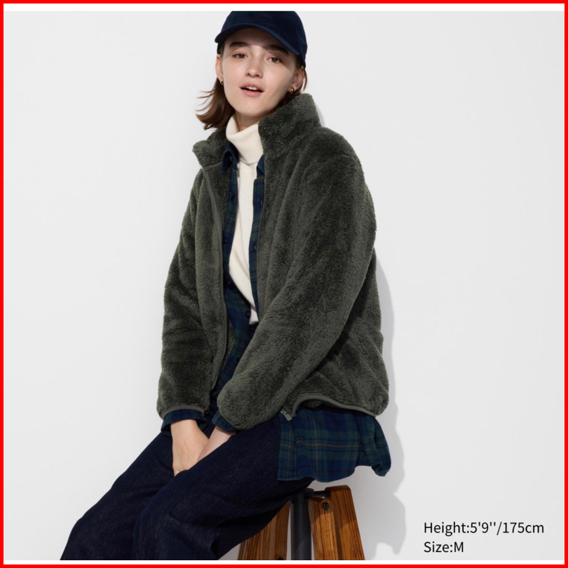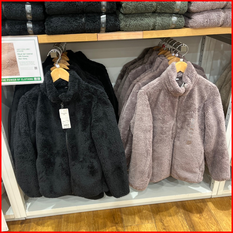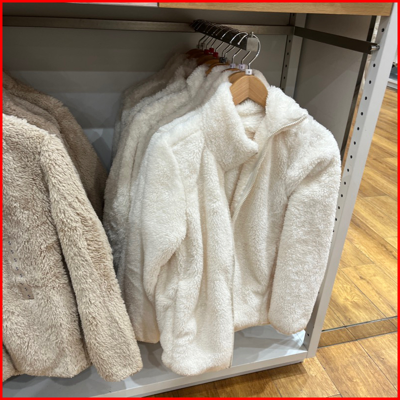 Jaket Fleece Bulu Lembut Resleting Lengan Panjang Cewek Uniqlo