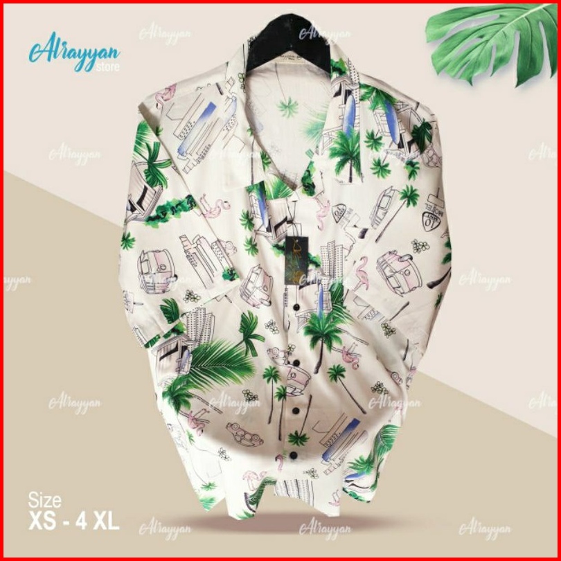 Alrayyan Store - Kemeja Hawaii Rayon Lengan Pendek Pria Wanita Baju Motif Full Print Jumbo Unisex