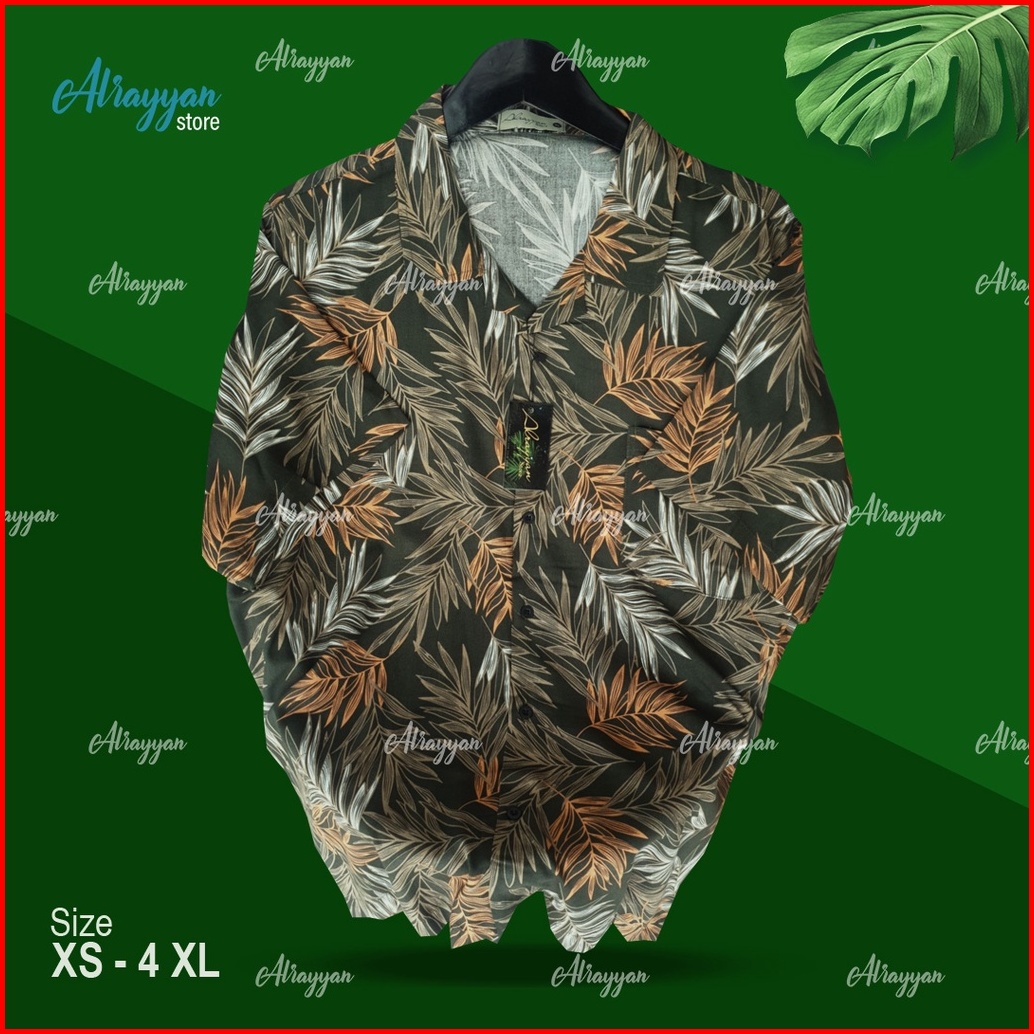 Alrayyan Store - Kemeja Daily Pantai Lengan Pendek Full Print Motif Daun Hawaii Printing Casual Pria Wanita