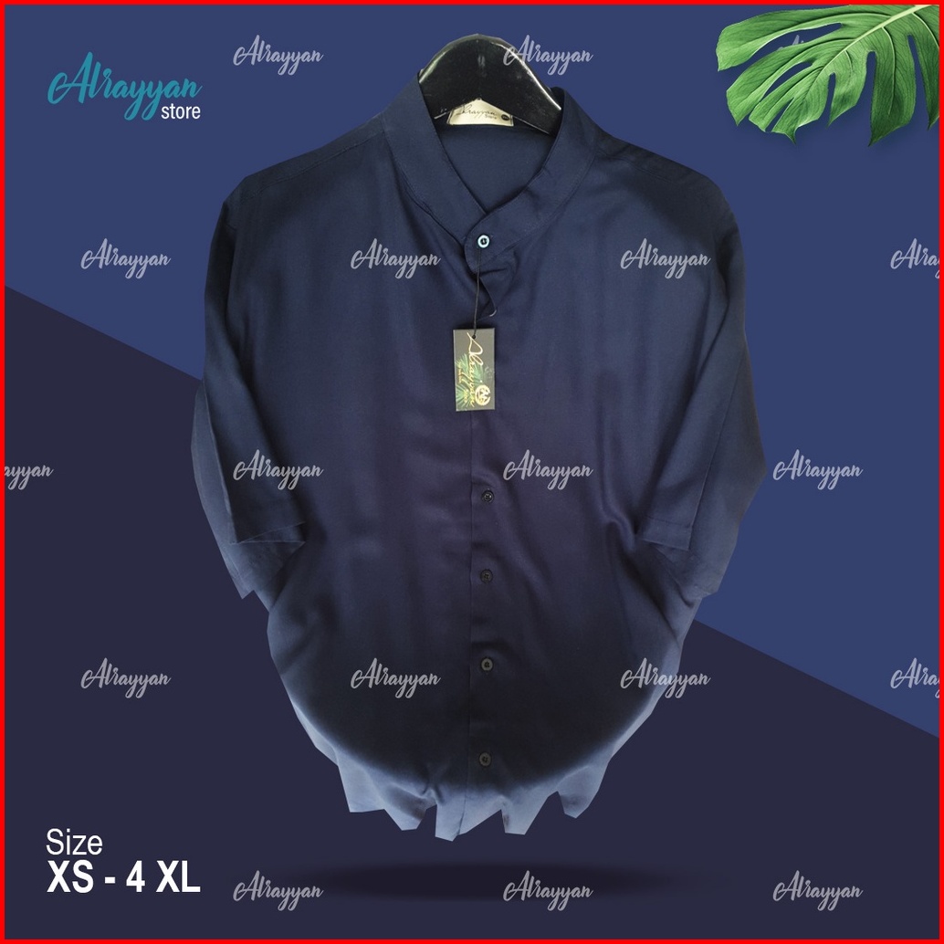 Alrayyan Store - Kemeja Hawai Bali Kerah Shanghai Lengan Pendek Navy Polos
