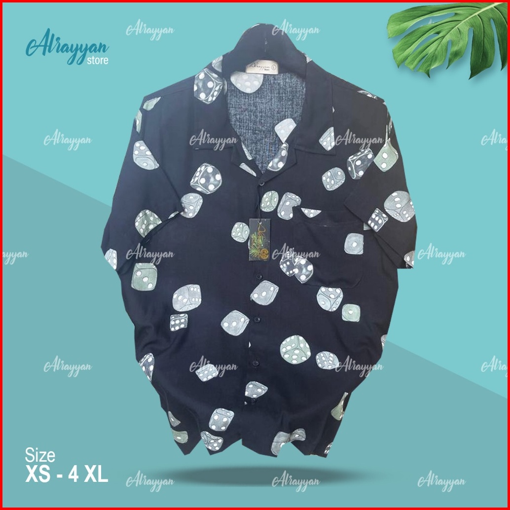 Alrayyan Store - Kemeja Hawaii Motif Dadu Lengan Pendek Unisex Baju Full Print Jumbo