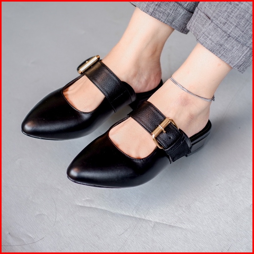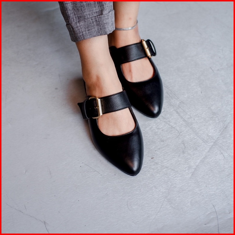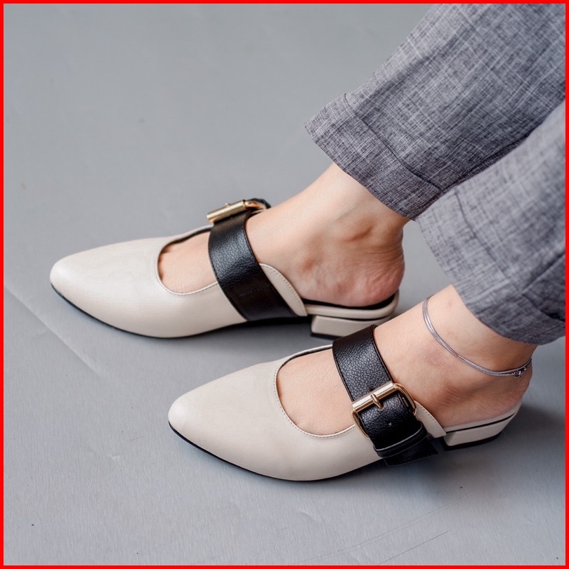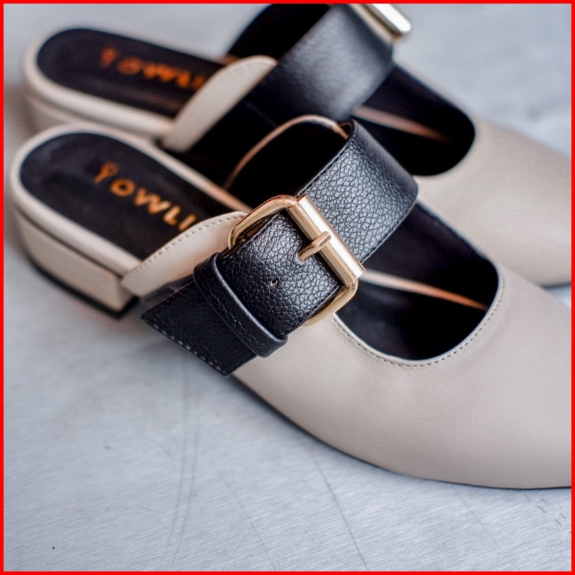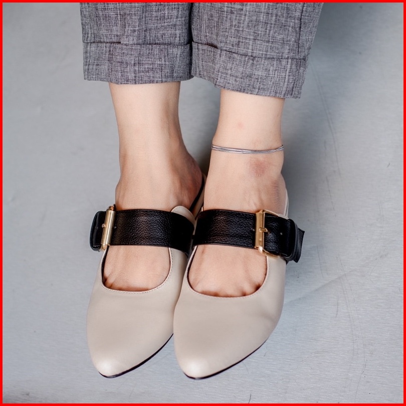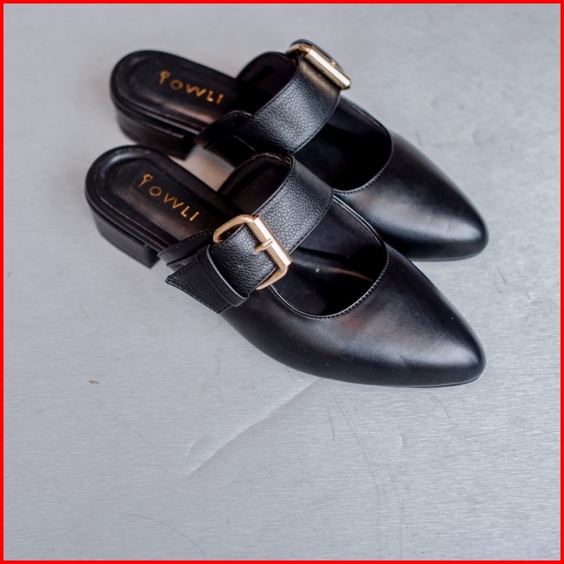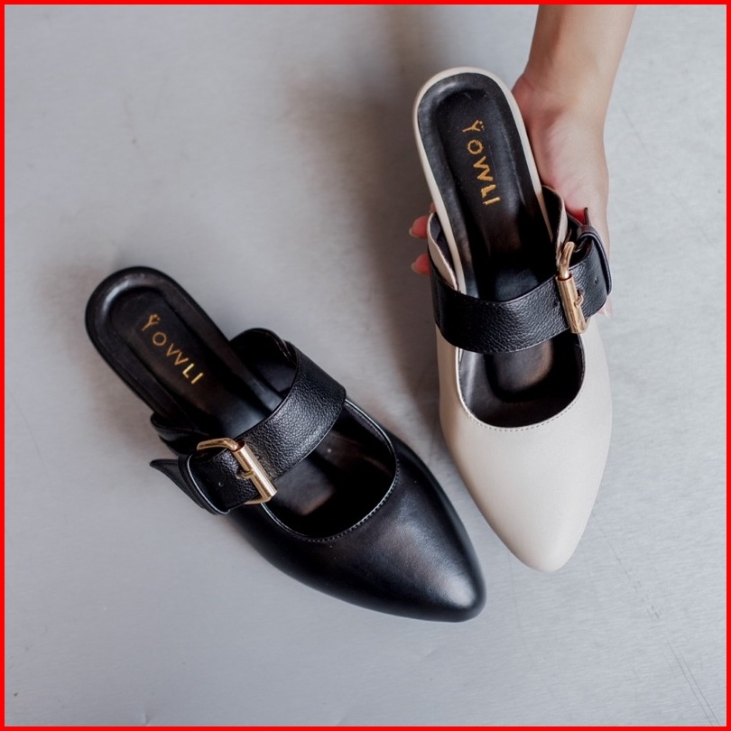 Yovvli Rinoa Sepatu Wanita Casual Mules Flatshoes Kulit Hak 3 Cm