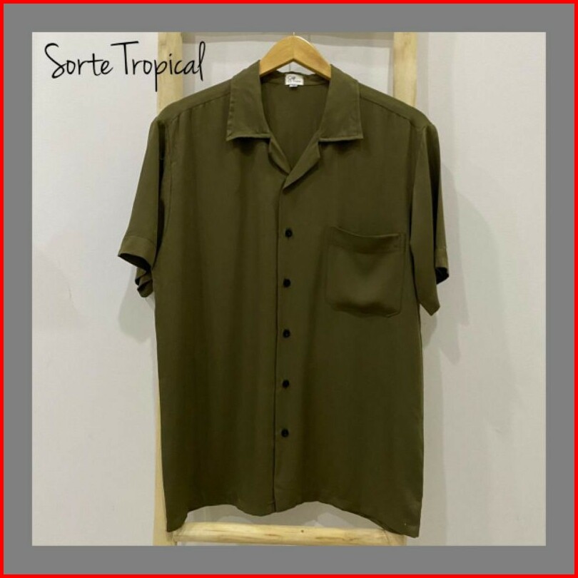 Sorte Tropical - Kemeja Polos Pantai Hawai Kasual Unisex Rayon Hijau Army