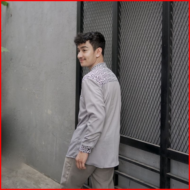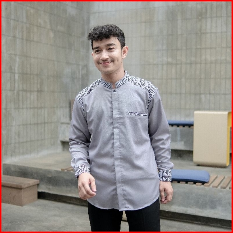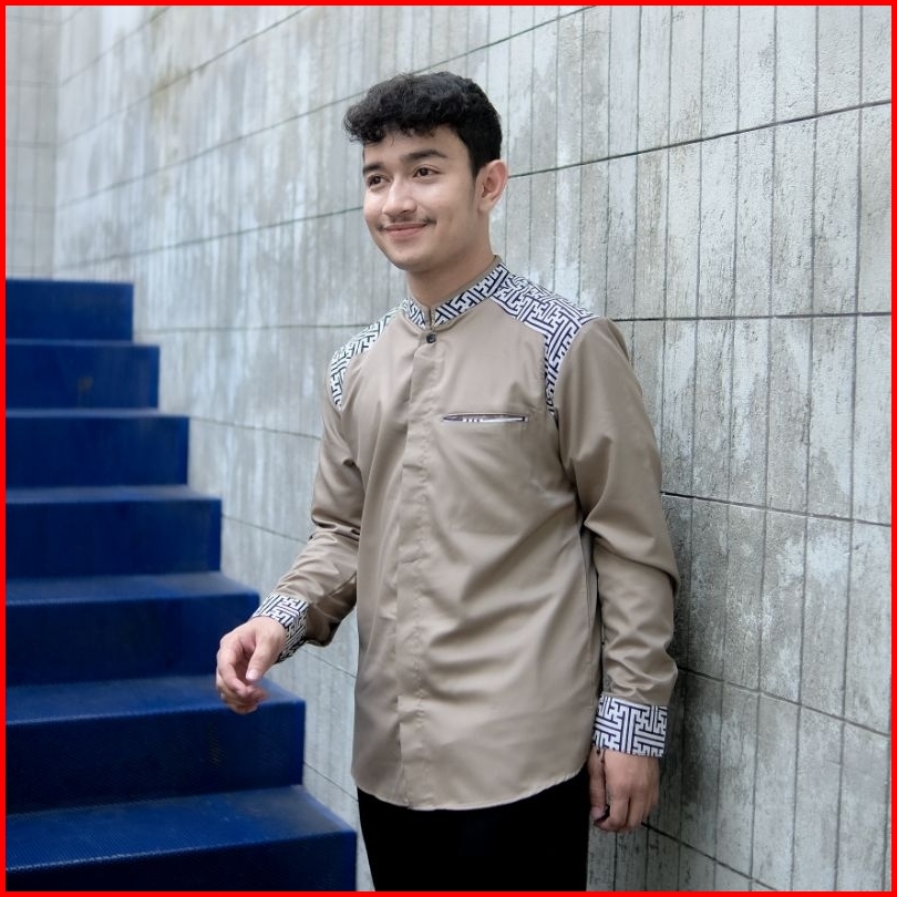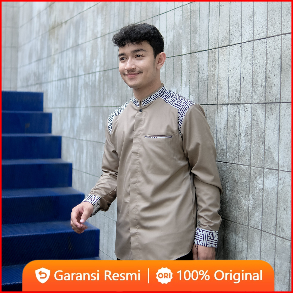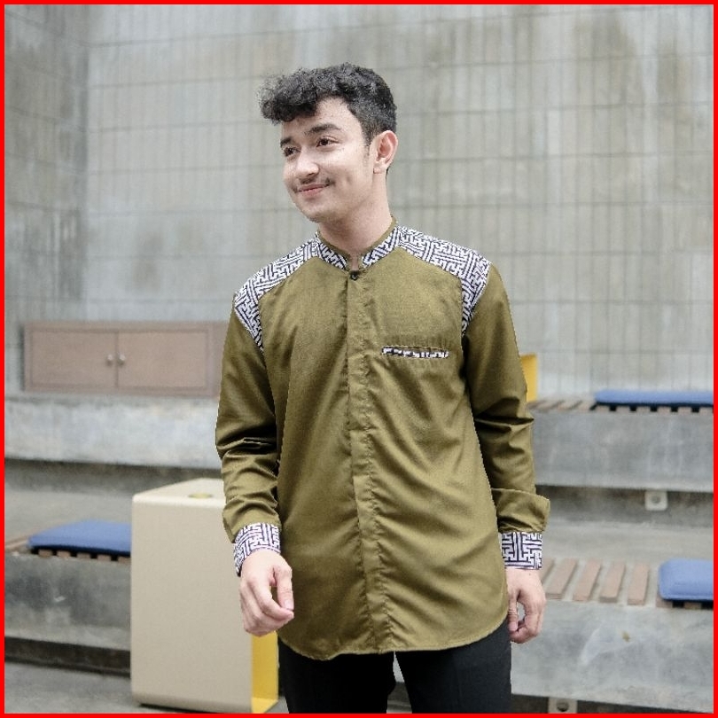 Baju Koko Pria Lengan Panjang Kombinasi Batik Original El Rumi Bahan Toyobo