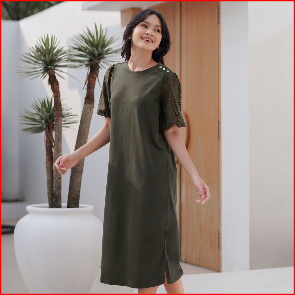 Momelca Wika Midi Dress - Gaun Cotton Premium Wanita