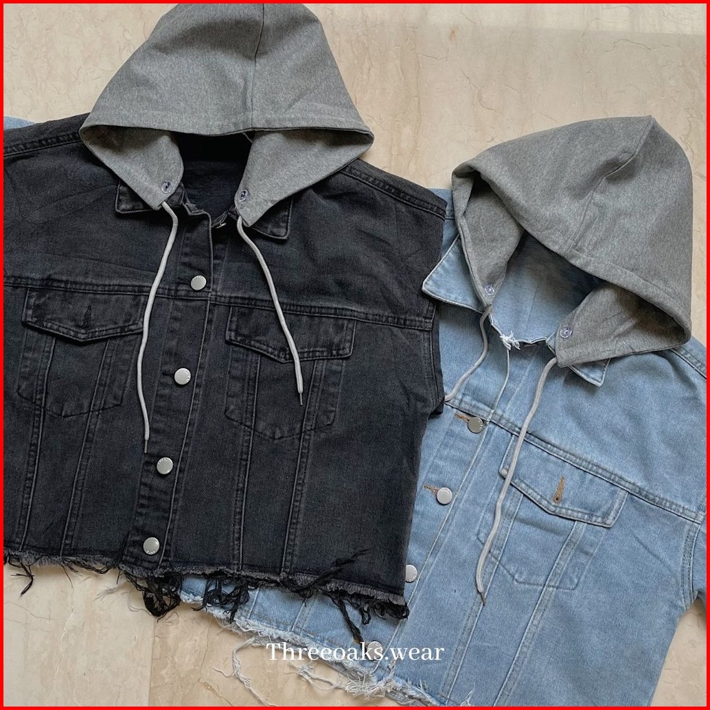 Lisa Jaket Jeans Oversize Premium Impor Dengan Topi Lepas Pasang Korean Style Lisa Blackpink