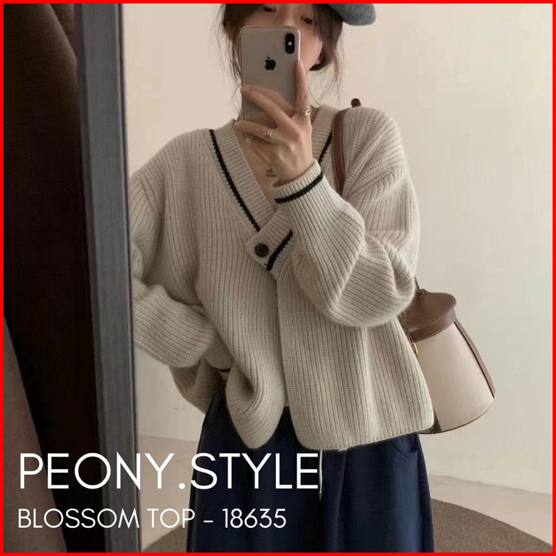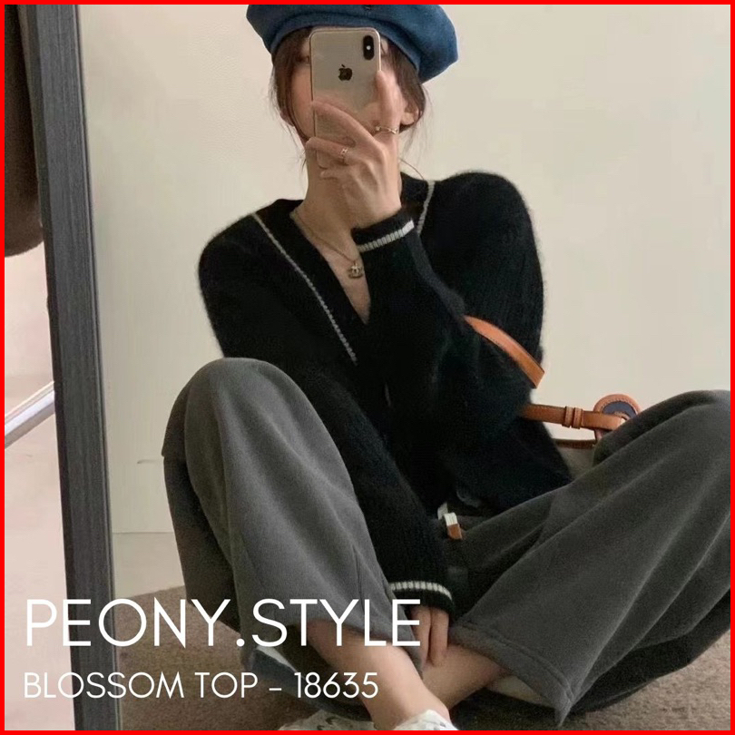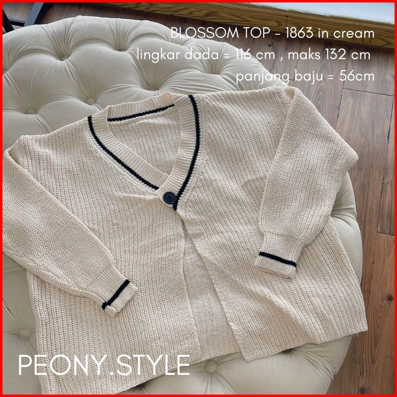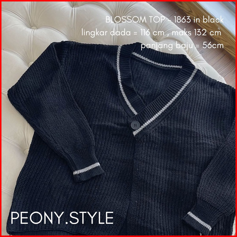 Blossom Sweater Top - Sweater Rajut Impor Model Korean Style Salur Hitam Putih Unik
