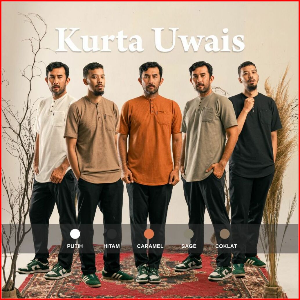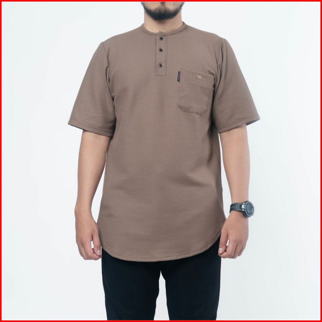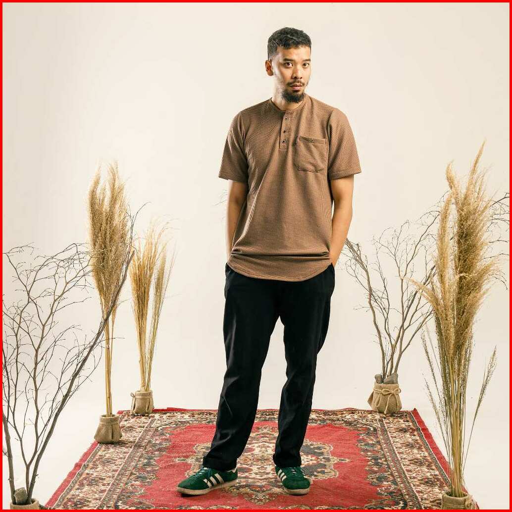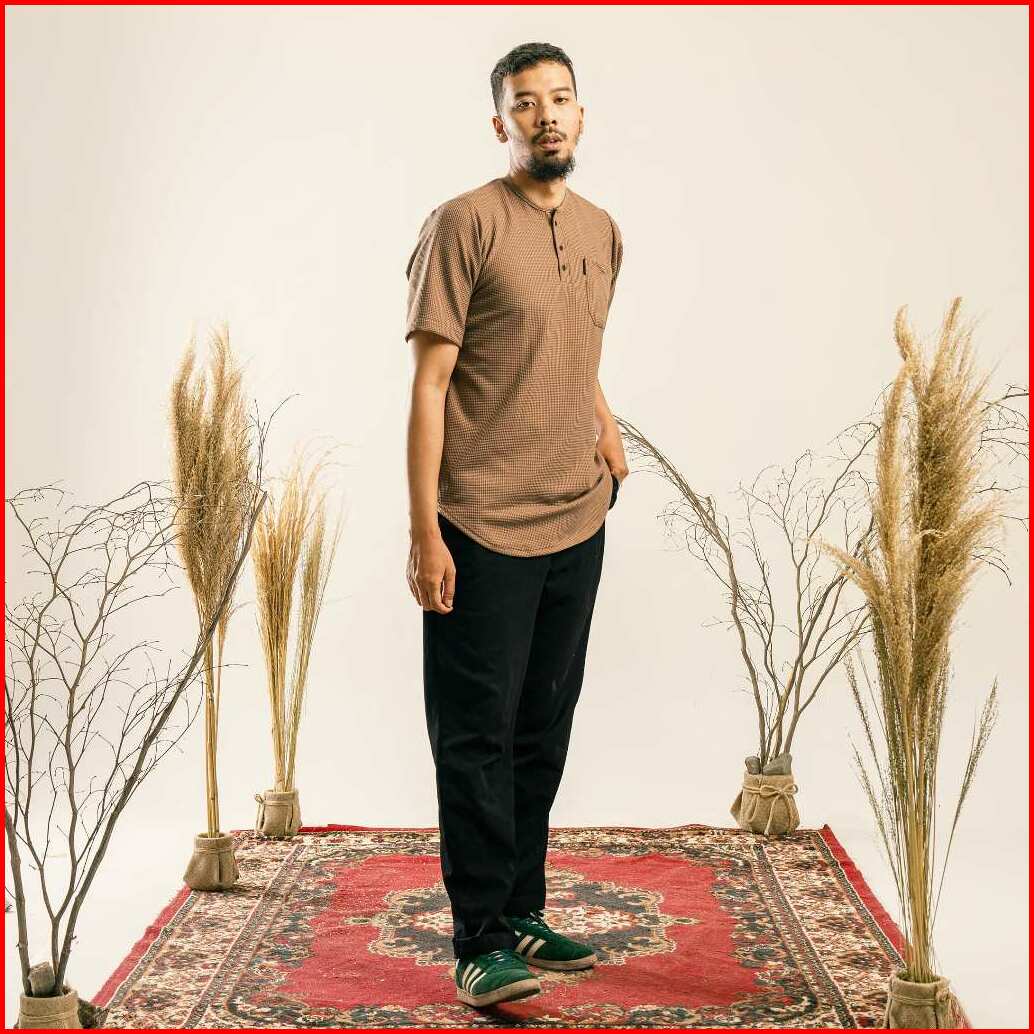 Khoirummah Kurta Uwais Dewasa Baju Muslim Kasual Koko Polos Kurta Pria Lengan Pendek Brown