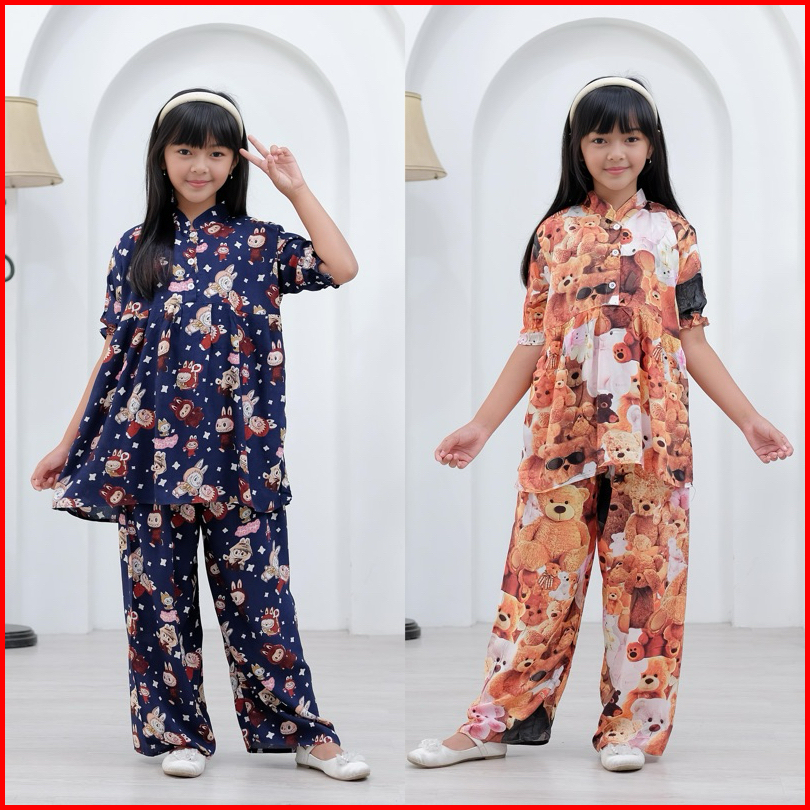 Mgr Setelan Panjang Anak Perempuan Setelan Anak Kerah Sanghai Set Anak Celana Panjang Baju Anak Bahan Rayon Grade A