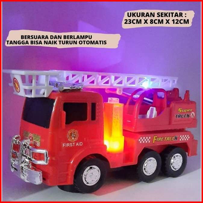 Wtbs Mainan Anak Mobil Pemadam Kebakaran Tangga Auto Dan Bersuara Sirine Dan Lampu