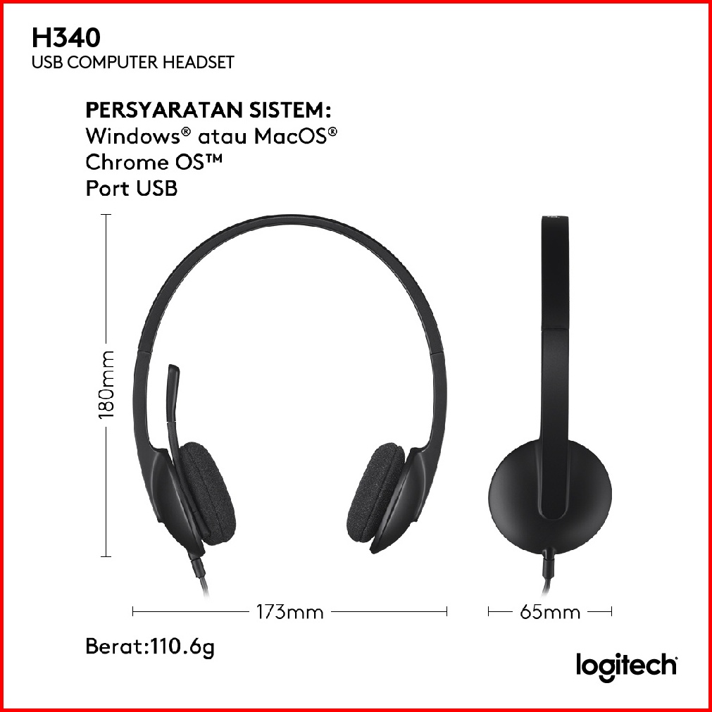 Logitech H340 Headset Stereo Usb Dengan Mikrofon Noise-cancelling