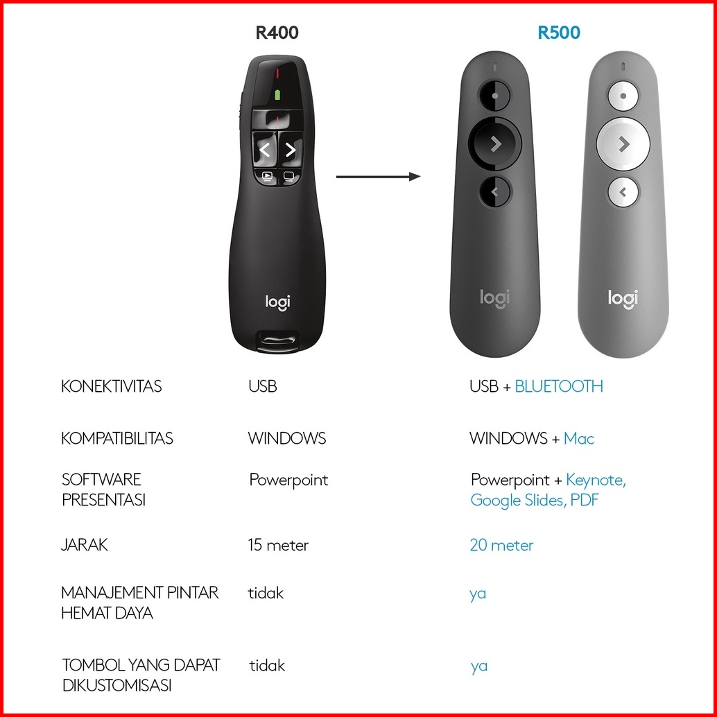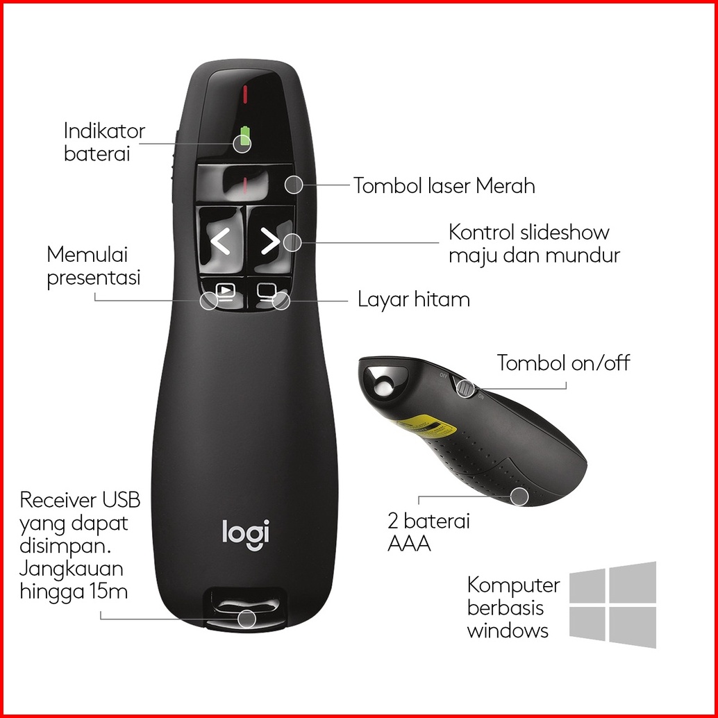 Logitech R400 Remote Pointer Presenter Wireless Laser Merah