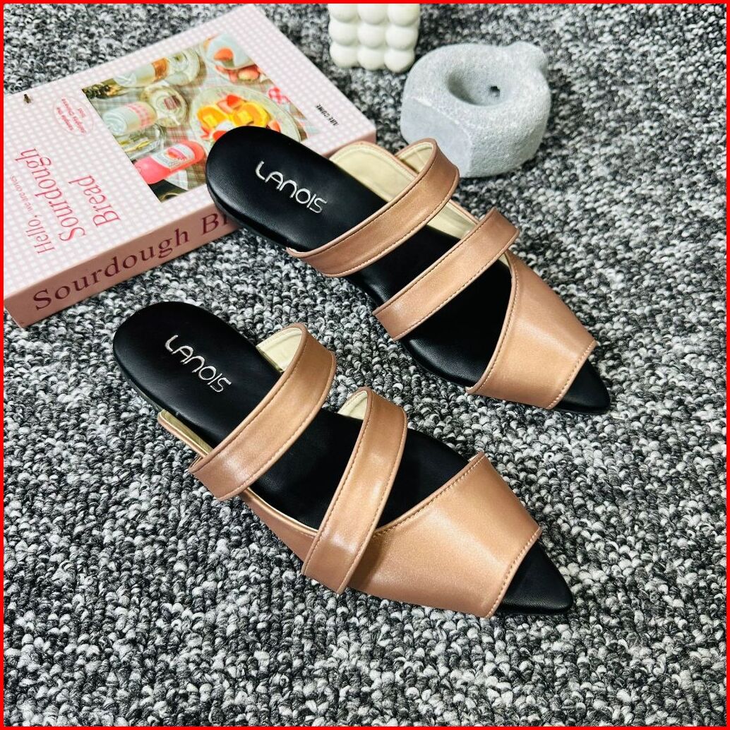 Lanois Sandal Wanita Mules Ranie Flatshoes Slip On Terbaru Sendal Selop Kekinian Hak Datar 1 Cm