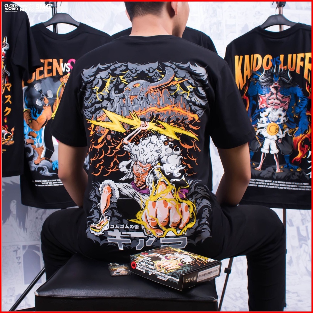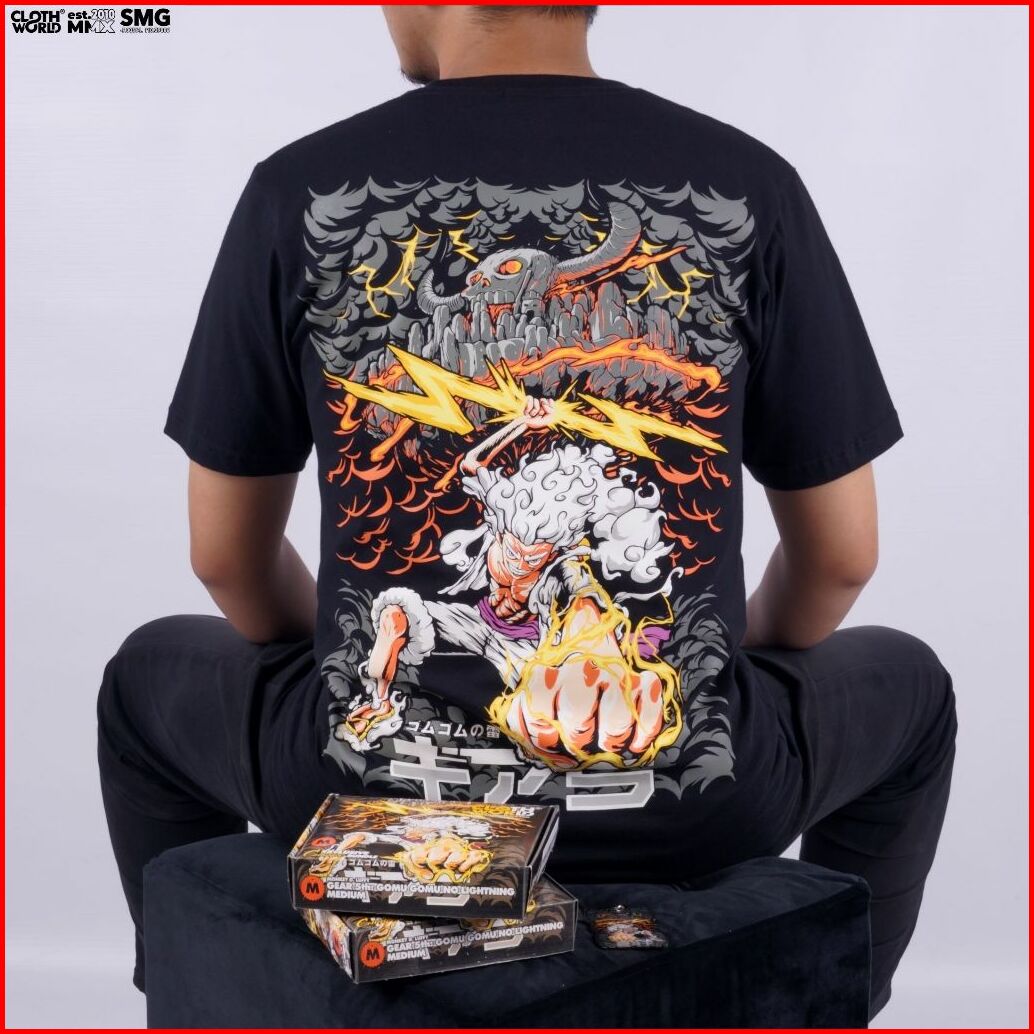 Monkey D. Luffy Gear Fifth 5 Sun God Nika Gomu Gomu No Lightning Anime One Piece Kaos Clowor T-shirt