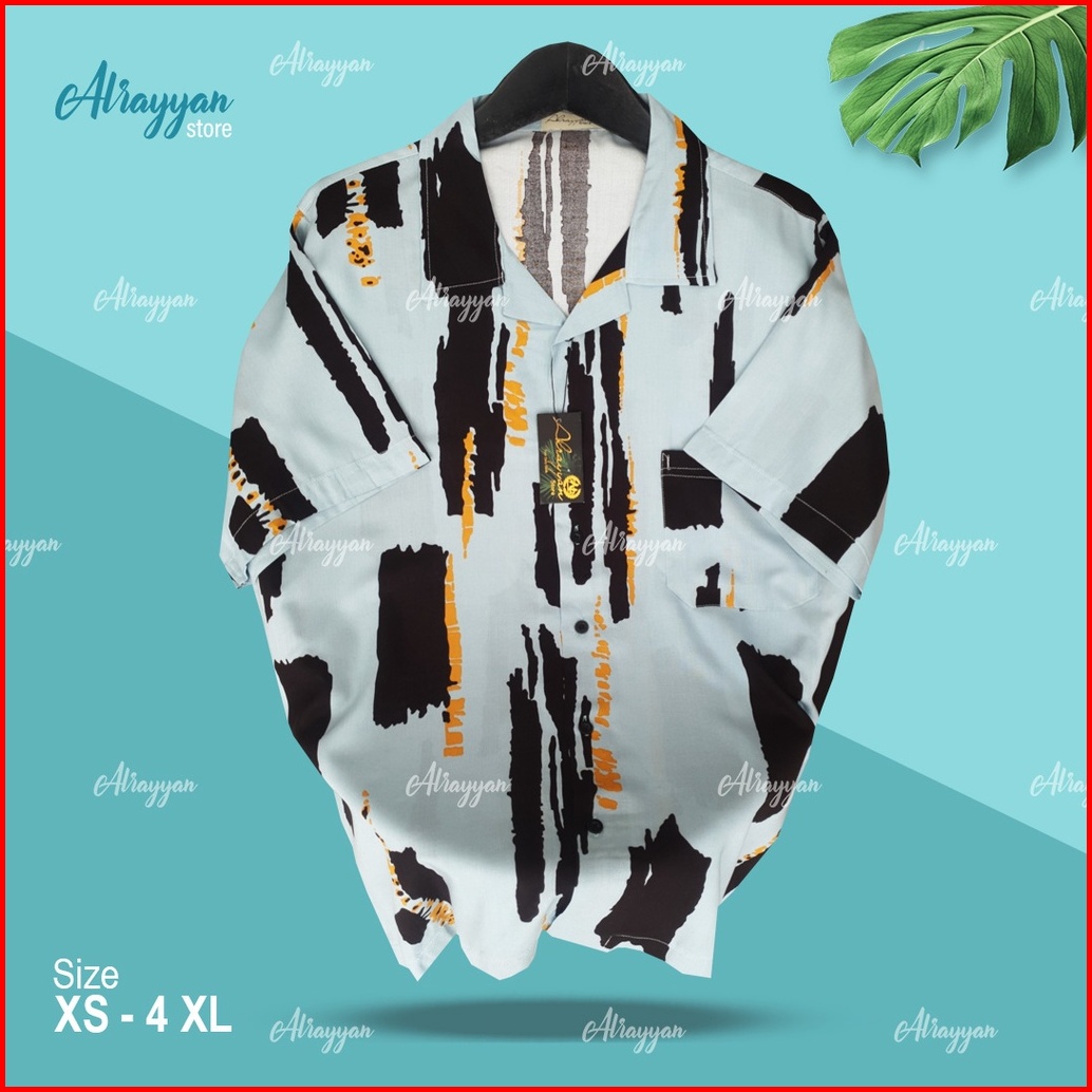 Alrayyan Store - Kemeja Pantai Hawaii Motif Full Print Paint Blue Lengan Pendek Pria Wanita