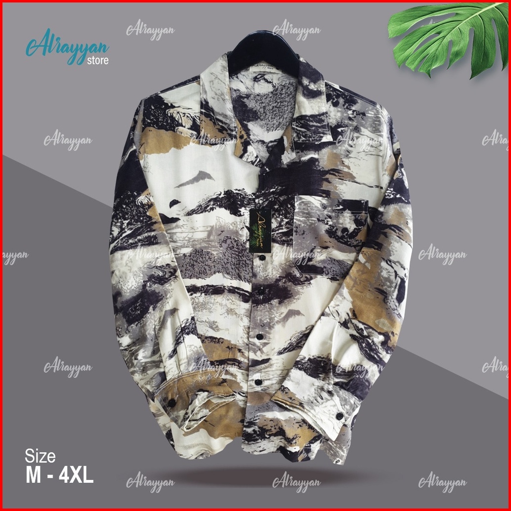Alrayyan Store - Kemeja Hawai Rayon Motif Abstrak Grey Lengan Panjang Men And Women Baju Santai Hawalili Kemeja Bali Cow