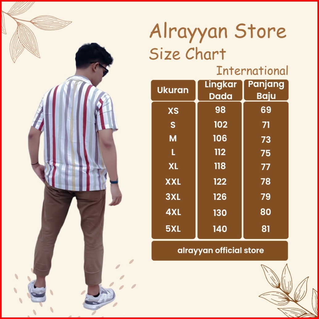 Alrayyan Store - Kemeja Hawaii Hijau Motif Salur Lengan Pendek Pria Wanita Baju Motif Full Print Jumbo Unisex