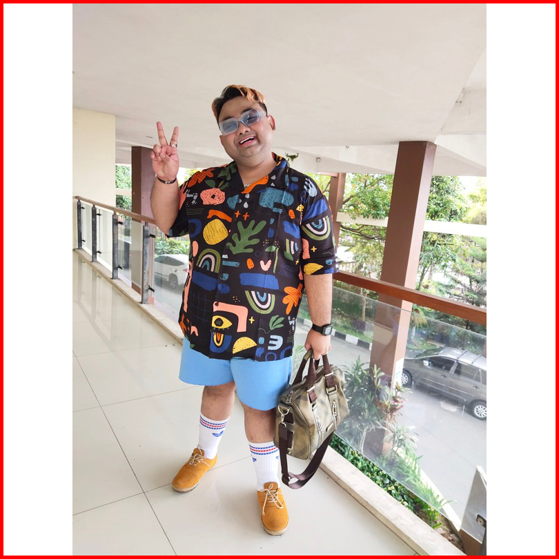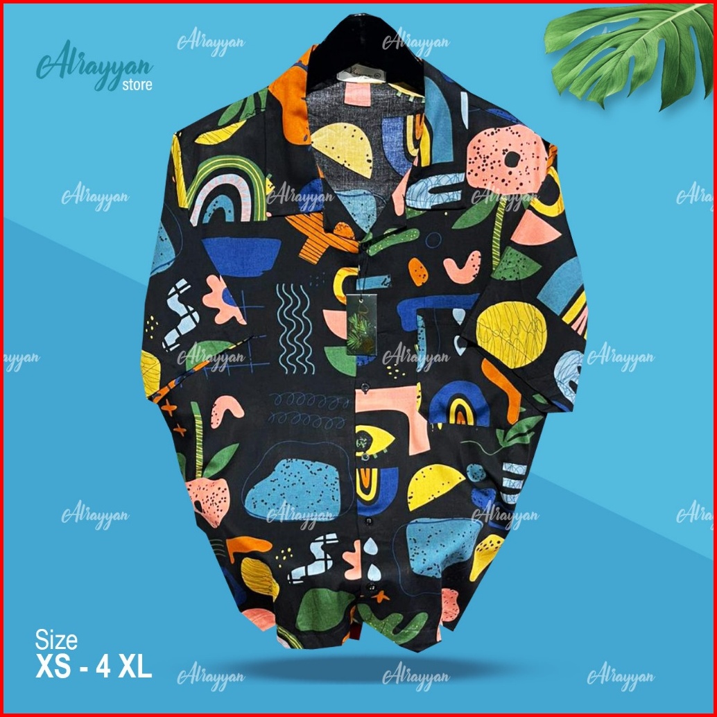 Alrayyan Store - Kemeja Pantai Hawaii Full Print Lengan Pendek Motif Malibu Dasar Hitam Unisex