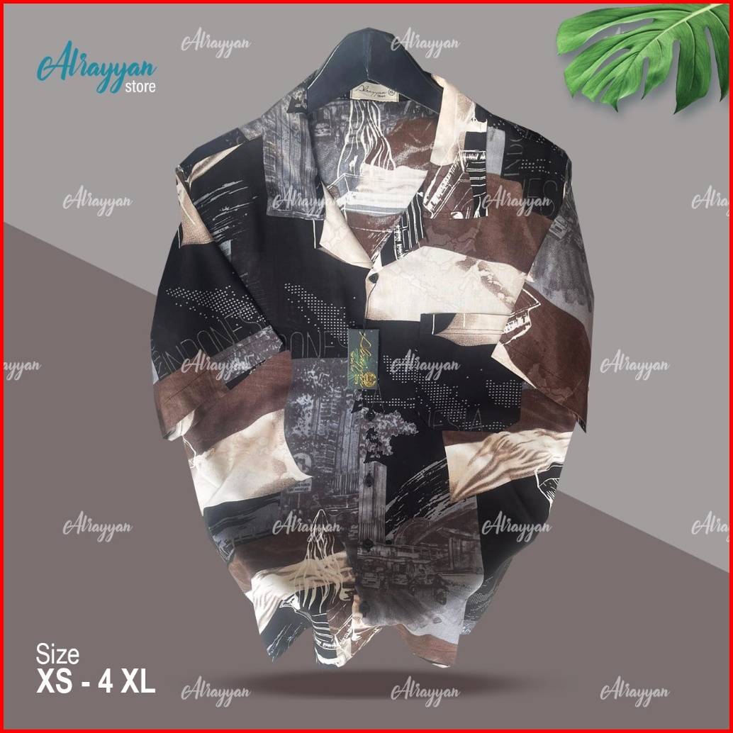 Alrayyan Store - Kemeja Hawaii Motif Indonesia Hitam Lengan Pendek Pria Wanita Baju Motif Full Print Jumbo Unisex