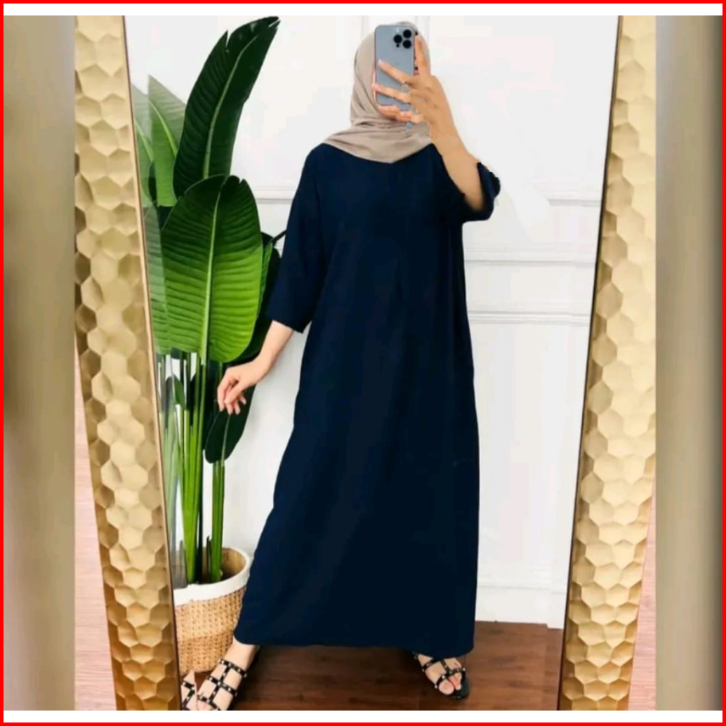 Daster Long Crincle Polos Model Lengan Tangan 3 4 Busui